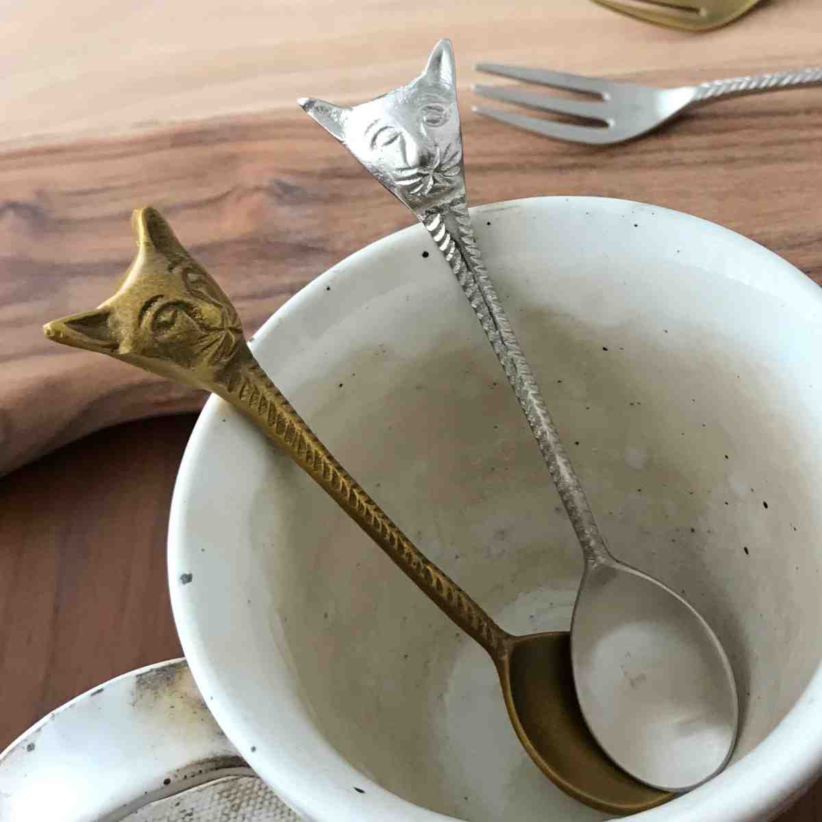 ティースプーン 12cm ブラスカトラリー キャットフェイス ブラス ( コーヒースプーン スプーン 洋食器 カトラリー )