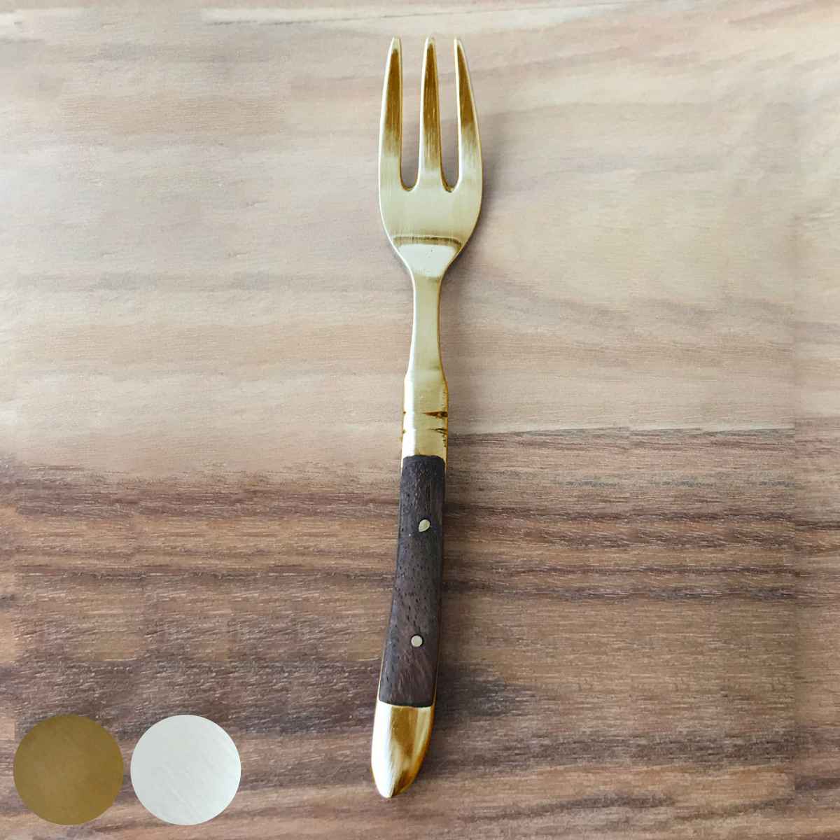 柄が木になっているオーソドックスな真鍮カトラリー●柄が木になっている、オーソドックスなデザインの真鍮製のフォークです。