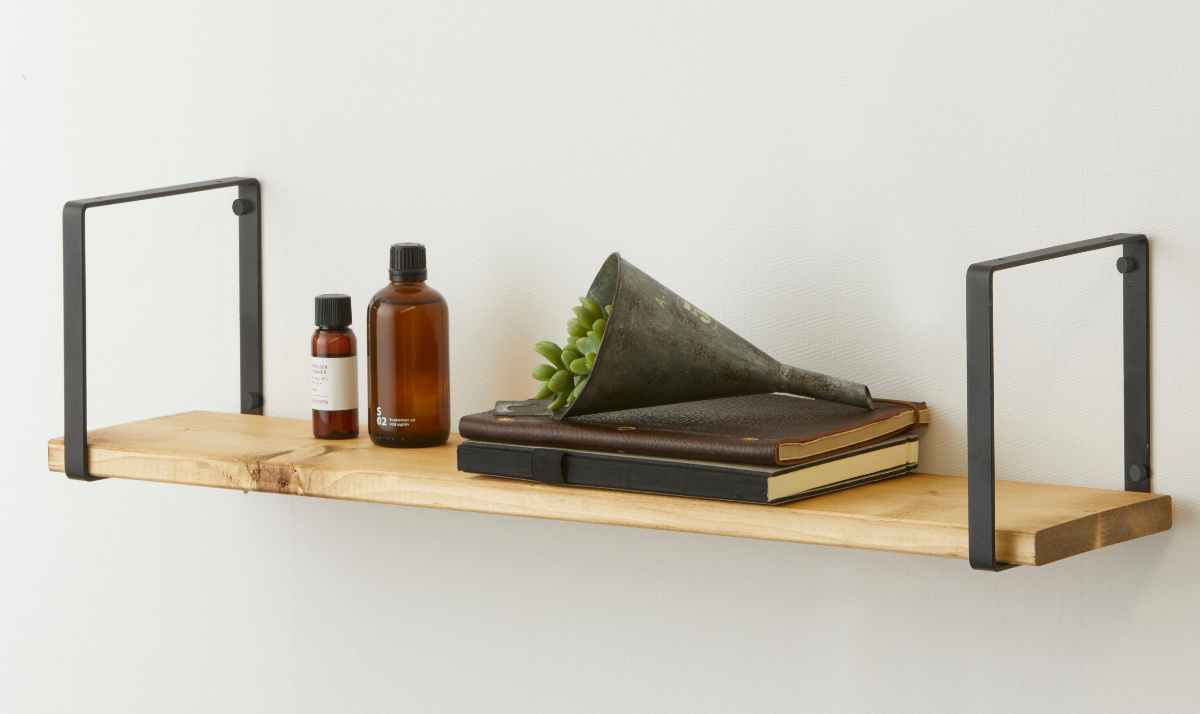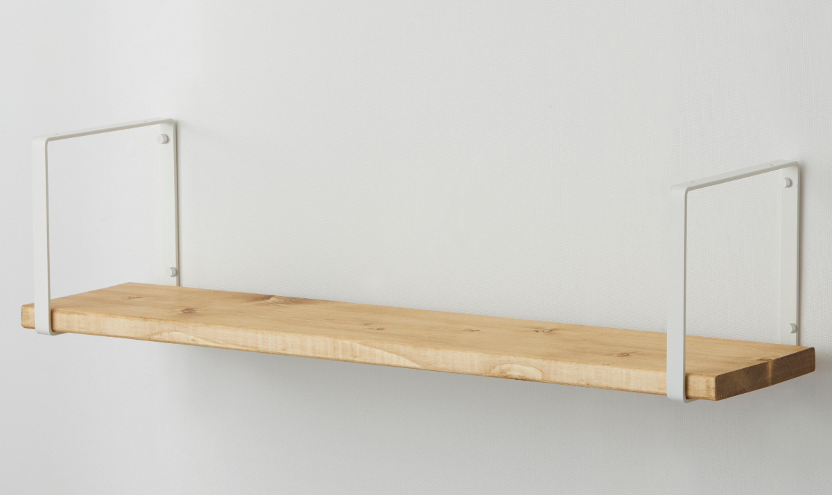 壁を大きく傷つけずに簡単に棚が作れる壁面にフレームを取り付けて、ウォールシェルフを作ることができるDIYパーツです。お好みの材質の木材を選び、付属のネジ及びピンで留めるだけなので、一人でも簡単に設置できます。壁を大きく傷つけずに小さな穴で設置できるので、賃貸の方でも安心してお使いいただけます。