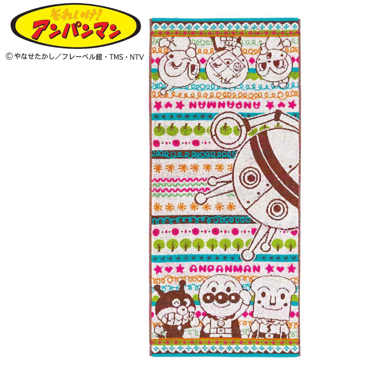 アンパンマンの綿フェイスタオル 34×76cm子供たちに大人気のキャラクター、アンパンマンと仲間たちの可愛いフェイスタオルです。柔らかくてふわふわな肌触りがとても気持ちよく、吸水力に優れています。お風呂上がりや枕カバーの代わりなどにお使い頂けます。保育園・幼稚園での水遊び、プールや海など、夏のレジャーにもピッタリです。プレゼントにもおすすめのアイテムです。