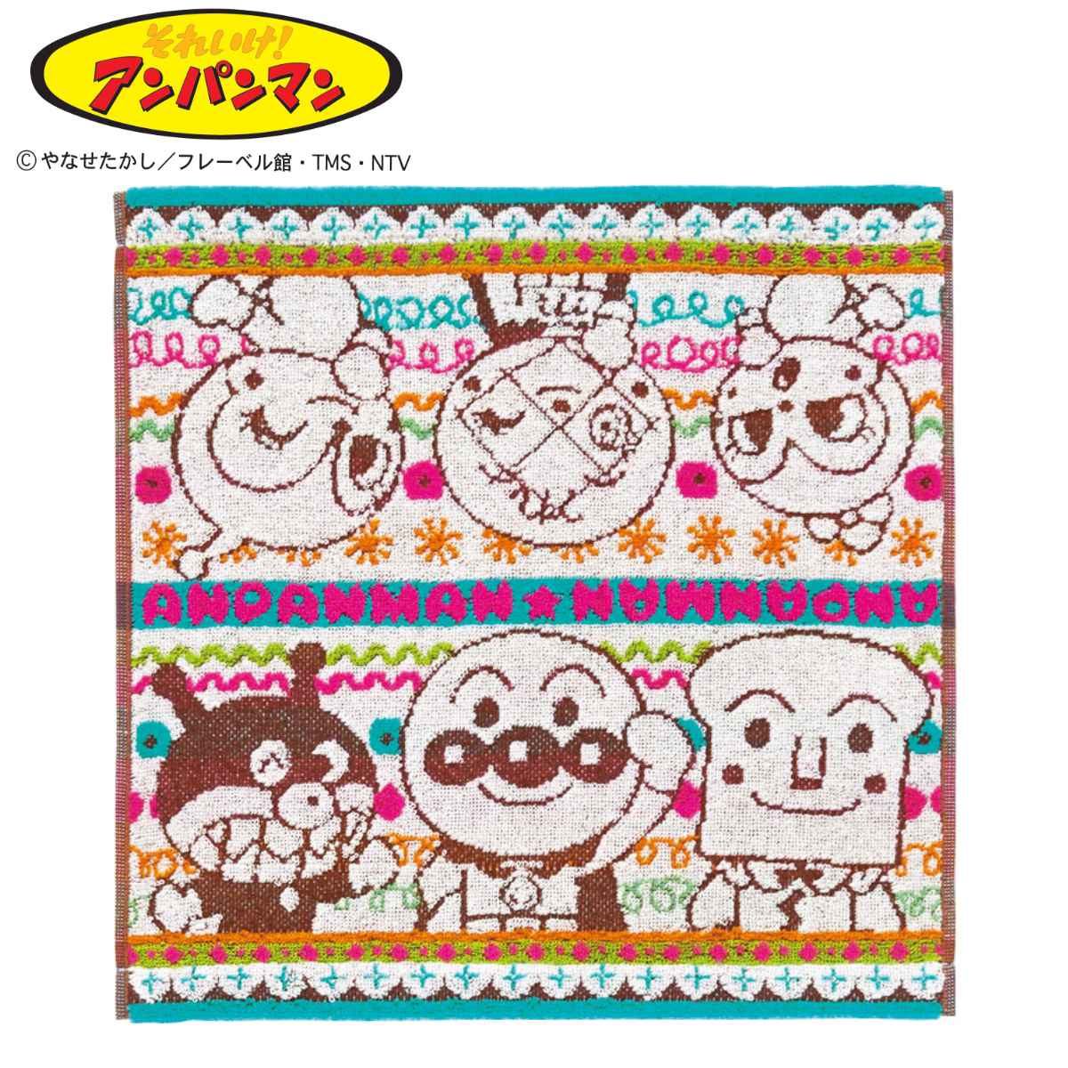 アンパンマンの綿ハンドタオル 34×34cm子供たちに大人気のキャラクター、アンパンマンと仲間たちの可愛いハンドタオルです。柔らかくてふわふわな肌触りがとても気持ちよく、吸水力に優れています。手拭きタオルとしてはもちろん、しっかりめのタオルなので保育園の通学・通園タオルやおしぼり、汗拭きタオルとしてもお使い頂けます。プレゼントにもおすすめのアイテムです。