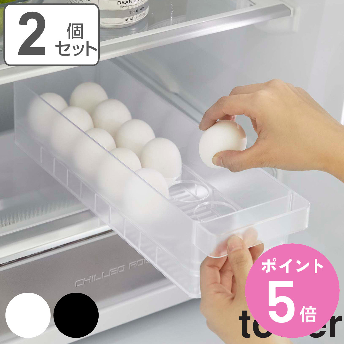 特典付き 山崎実業 tower 冷蔵庫中卵ケース タワー 2個セット ( 4903208057646 タワーシリーズ 冷蔵庫 卵ケース 卵トレー 冷蔵庫トレー 冷蔵室 収納ケース )