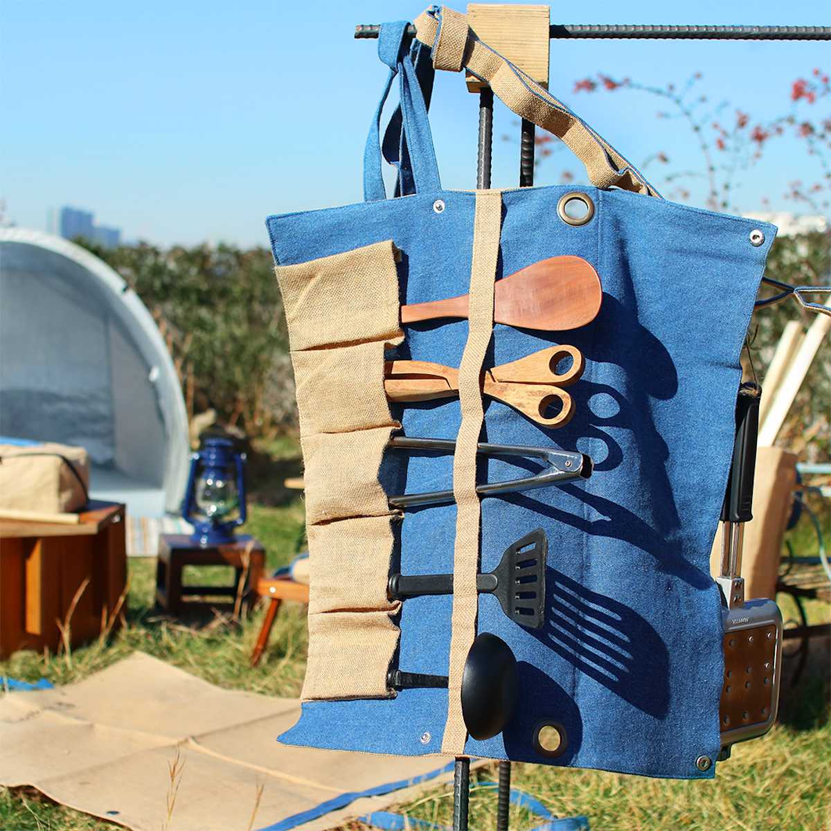 2つの素材を組み合わせたお洒落なツールケース環境にやさしい素材「ジュート」を使用したツールケースです。デニム素材との組み合わせがお洒落で目を惹くデザインになっています。丈夫で使い勝手が良く、カトラリーや工具などお好きなものを入れてお使いいただけます。