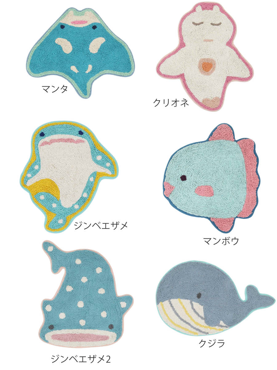 | サイズ | 厚さ:約 1(cm) マンタ:約 横54×縦45(cm) クリオネ:約 横47×縦53(cm) ジンベエザメ:約 横46×縦53(cm) マンボウ:約 横51×縦44(cm) ジンベエザメ2:約 横47×縦54(cm) クジラ:約 横60×縦37(cm) |