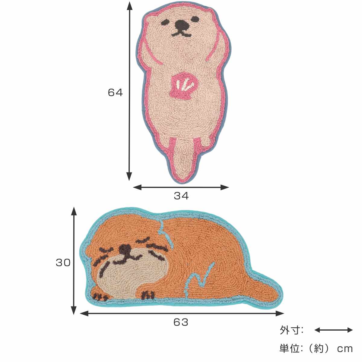 カワウソ:約 横63×縦30(cm)