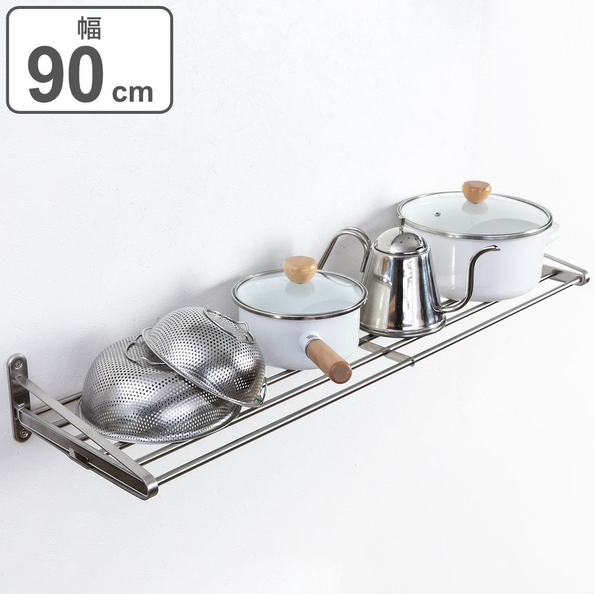 デッドスペースを有効活用 ネジ止め水切りパイプ棚 幅90cm空いているスペースに設置できる「ネジ止めタイプの水切り棚」です。汚れやサビに強く耐久性に優れたステンレス製のパイプ棚で、縦の空間を上手に使えます。シンク上に設置すれば、スノコ状の棚が風通しがよく、洗い物を早く乾かすことができます。調理台上の空間に設置すれば、グラスや鍋・フライパン、調味料などの収納スペースとしてもお使いいただけます。