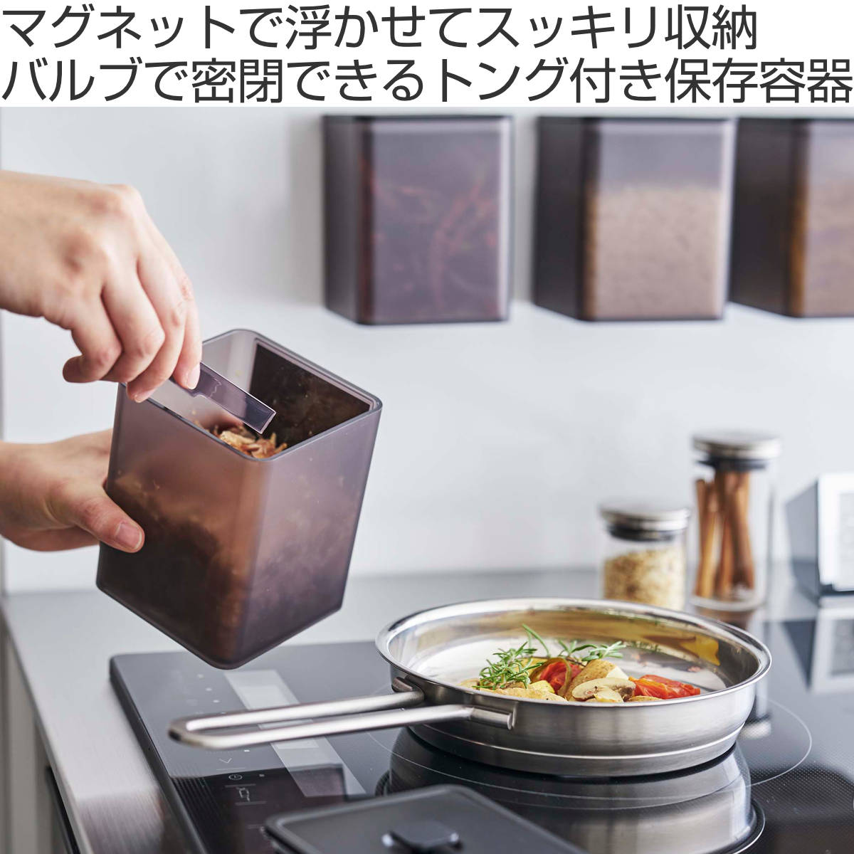 ![]() トング付き マグネット収納 | ![]() トング付き | ![]() スプーン付き |