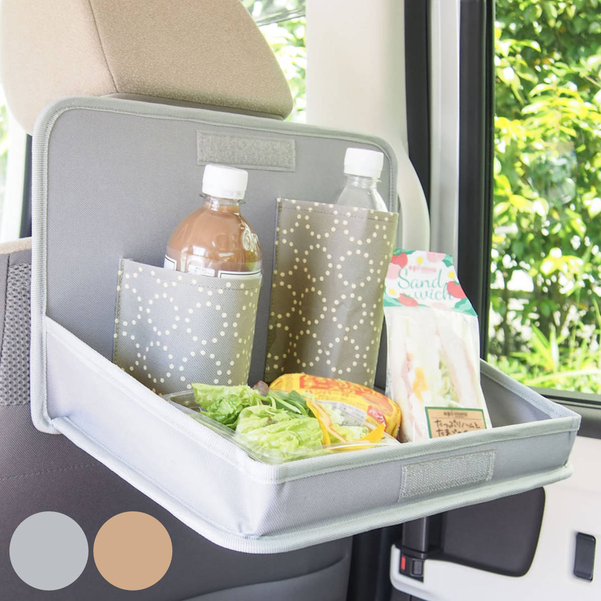 底面に面ファスナーが付いているので、車内のフロアマットに固定して使用することができます。