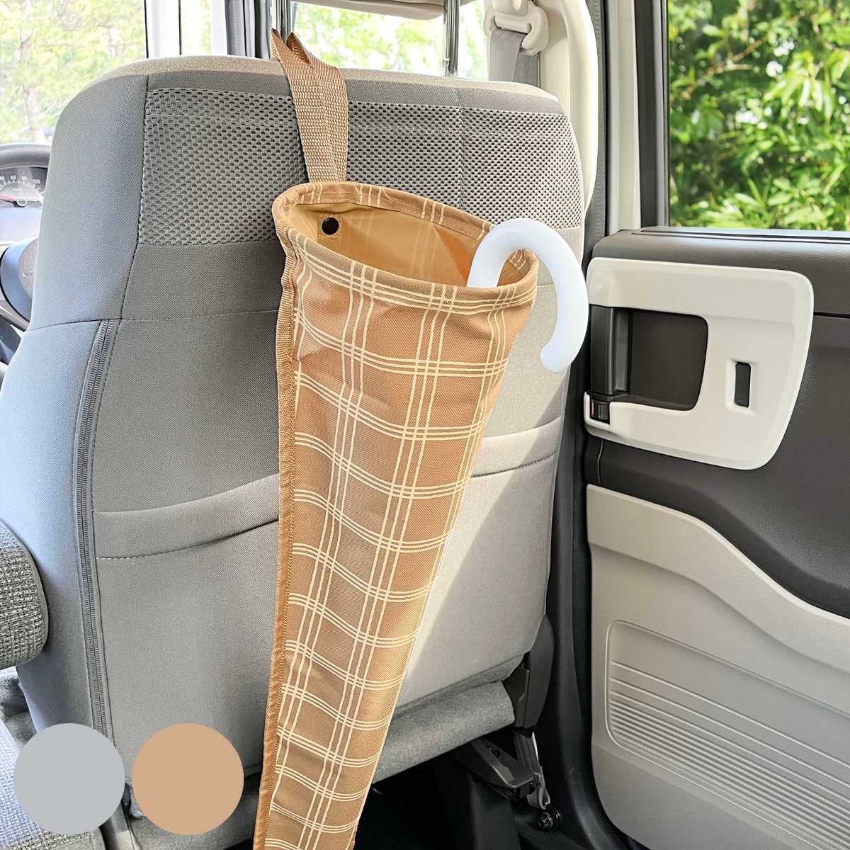 吊り下げても床に置いても使える2WAYタイプの車内用ゴミ箱です。開口部が広くて捨てやすく、内側は撥水加工付きで、汚れてもサッと拭いてお手入れできます。ナチュラルなカラーと北欧デザインがおしゃれな便利で素敵なアイテムです。