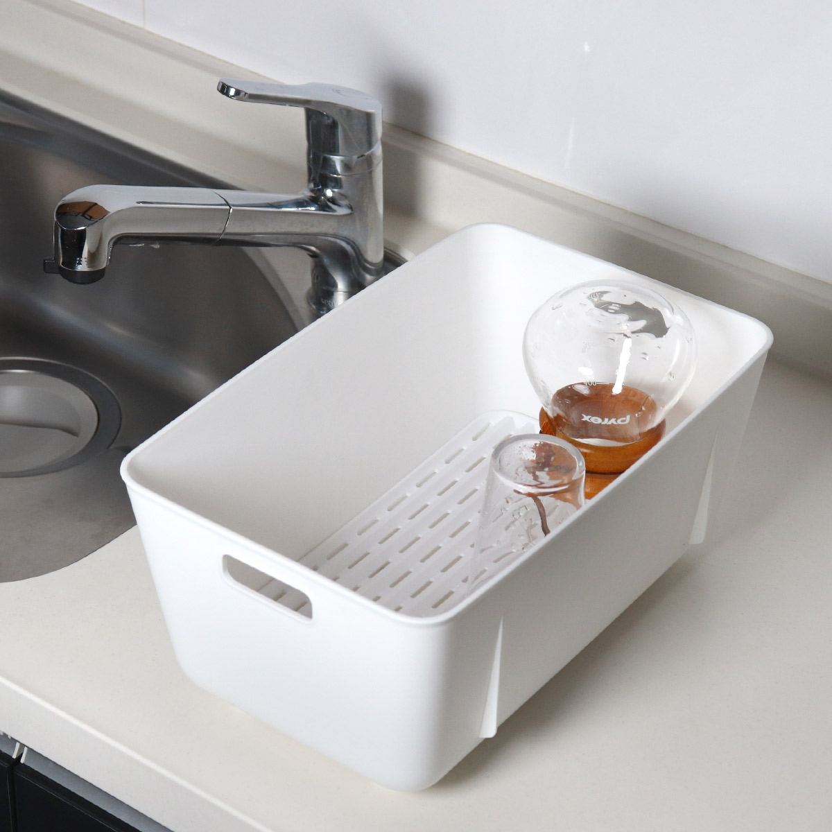 水切りバスケット 洗い物 食器 洗い つけ置き 漬け置きカゴ ホワイト 四角 長方形 角型 スクエア バケツ キッチンバケツ 軽い 多機能 万能 マルチ 便利グッズ キッチン用品 キッチン雑貨 キッチン小物 キッチングッズ おすすめ オススメ 便利 役立つ お洒落 LH10699