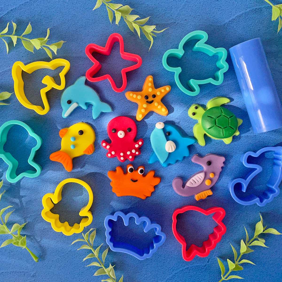 「うみのいきもの」のねんどぬき型とローラーのセット