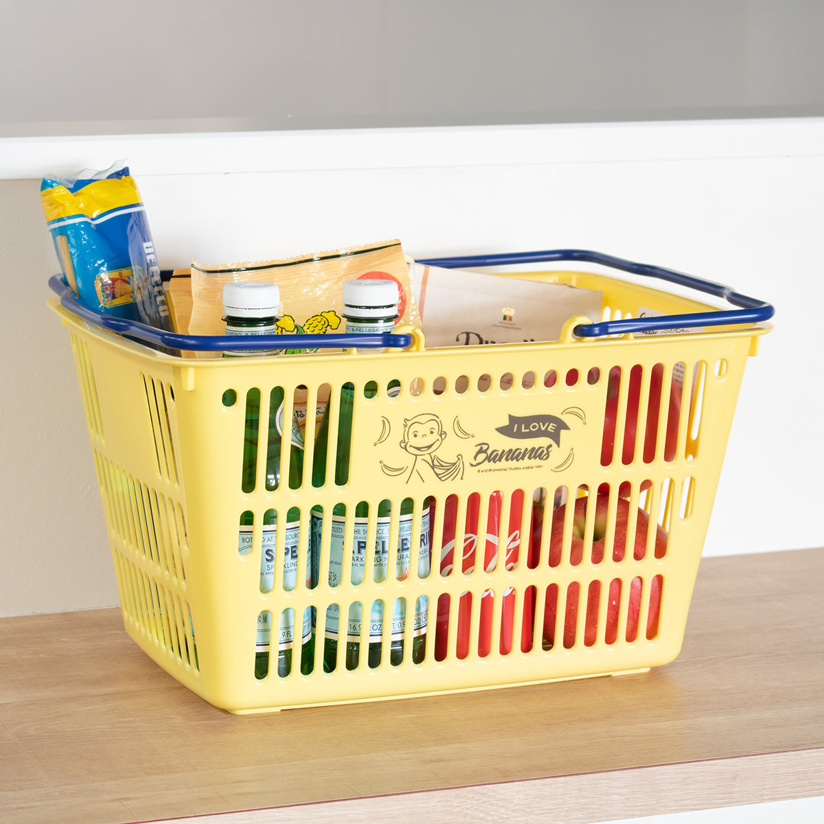 かわいいおさるのジョージがデザインされた、ちょっとしたお買い物にピッタリのミニバスケットです。買い物カゴ以外にも食品ストックやおもちゃの収納など、様々なシーンで活用できます。