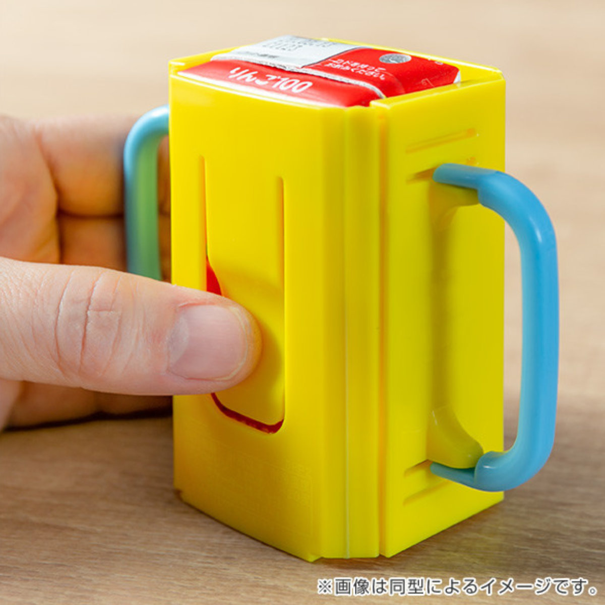紙パック用のドリンクホルダー年配の方や小さなお子様でも持ちやすく扱いやすい、両手ハンドル付きのドリンクホルダーです。両手でしっかりと持てるので、安定して紙パック飲料を飲むことができます。