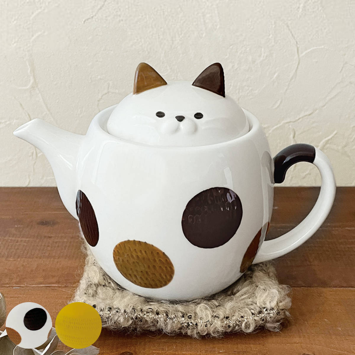 猫好き必至のティーポットどっしりとした佇まいは、まるで、お座布団でくつろぐ猫のよう。猫好きにはたまらないティーポットです。シリーズ商品のマグカップやスプーンと一緒に使えば、さらに気分が盛り上がります。