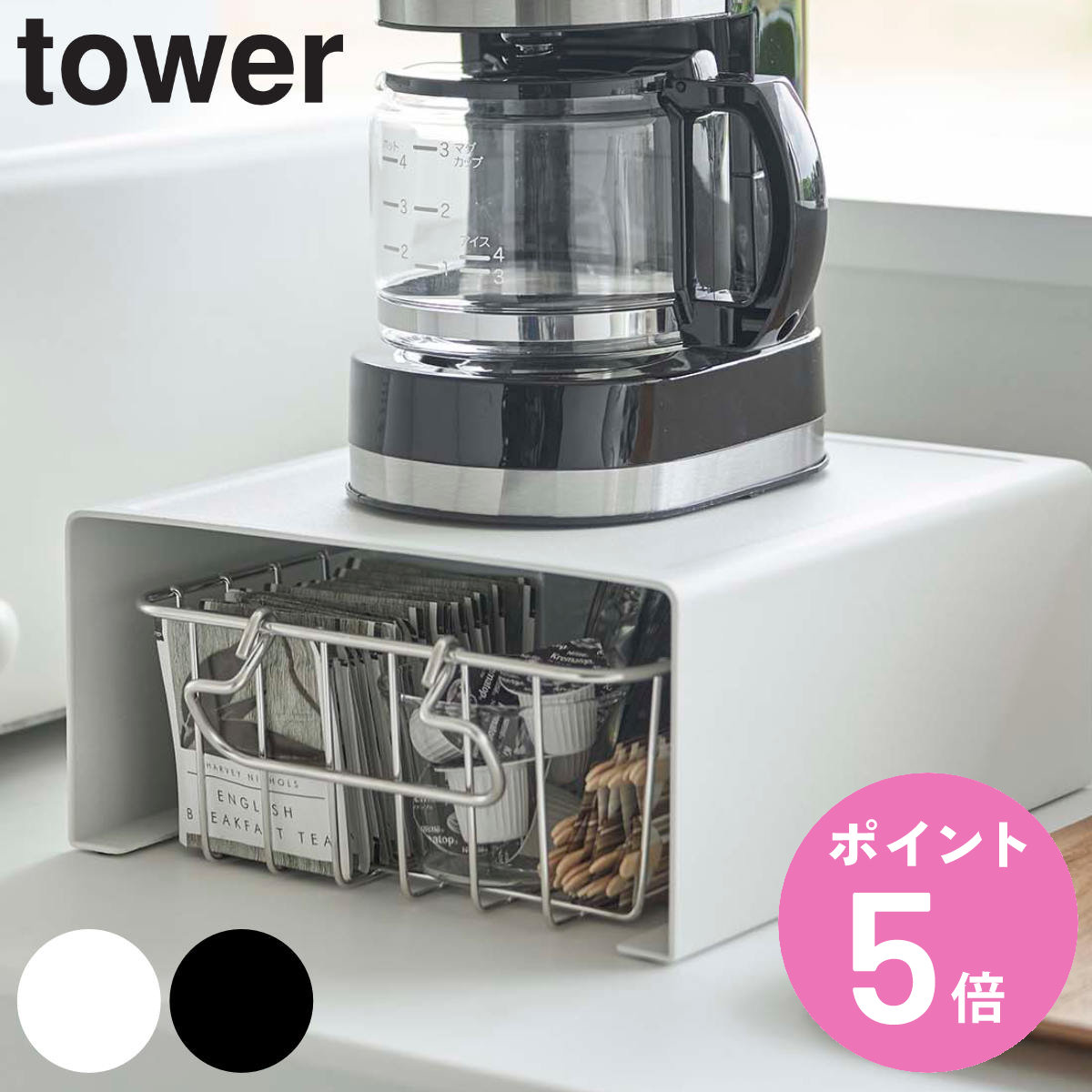 カウンター上 キッチン小物 食器 シンプル おしゃれ ホワイト 4903208060394 ブラック yamazaki 白 黒 山実 山崎 towerシリーズ 台所 キッチン カウンター キッチンアイテム 収納用品 卓上収納 家電置き ケトル 電気ポット ミキサー コーヒーメーカー 置き 便利 役立つ おすすめ オススメ お洒落 スタイリッシュ モノトーン 丈夫 調味料収納 LH10828