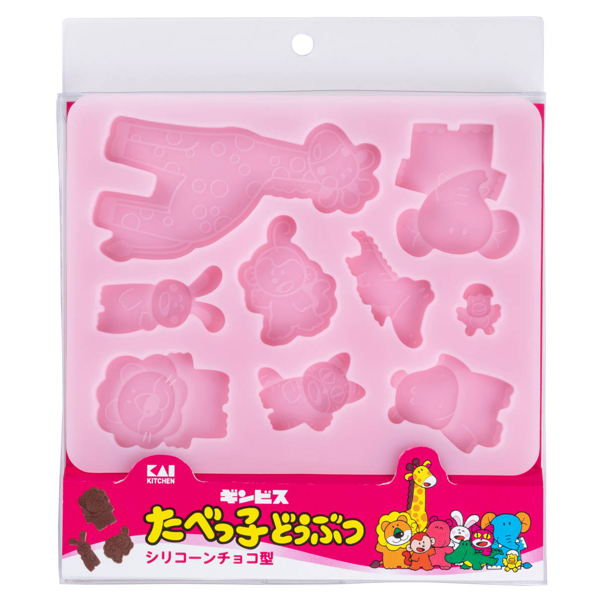 「たべっ子どうぶつ」のチョコが作れる子供から大人まで大人気の「たべっ子どうぶつ」とコラボレーションした製菓用品シリーズです。お馴染みのキャラクター9種類のチョコが作れるシリコーンチョコ型です。