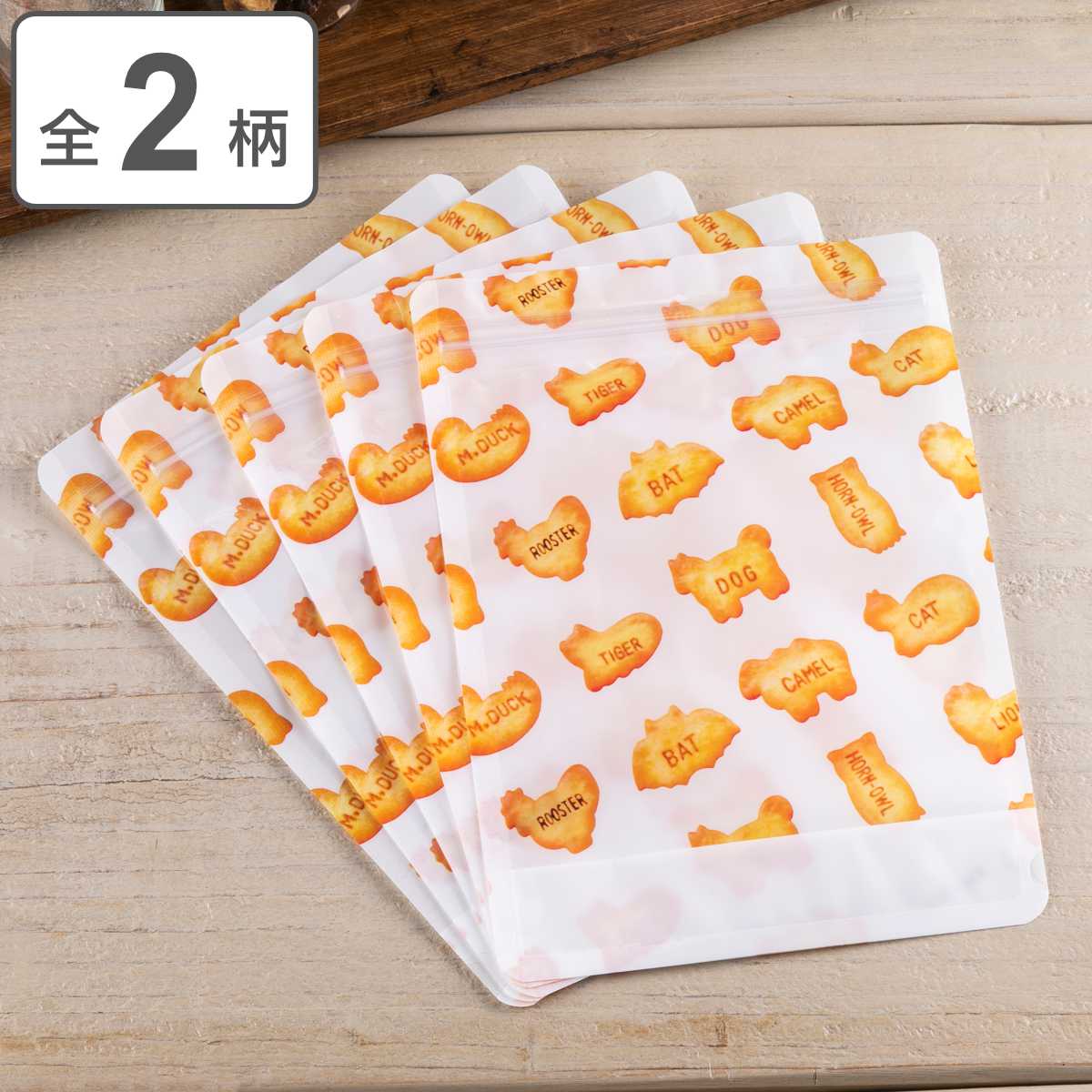 ビスケット柄のデザインと、キャラクターが集合したパッケージ風デザインの2種類があります。