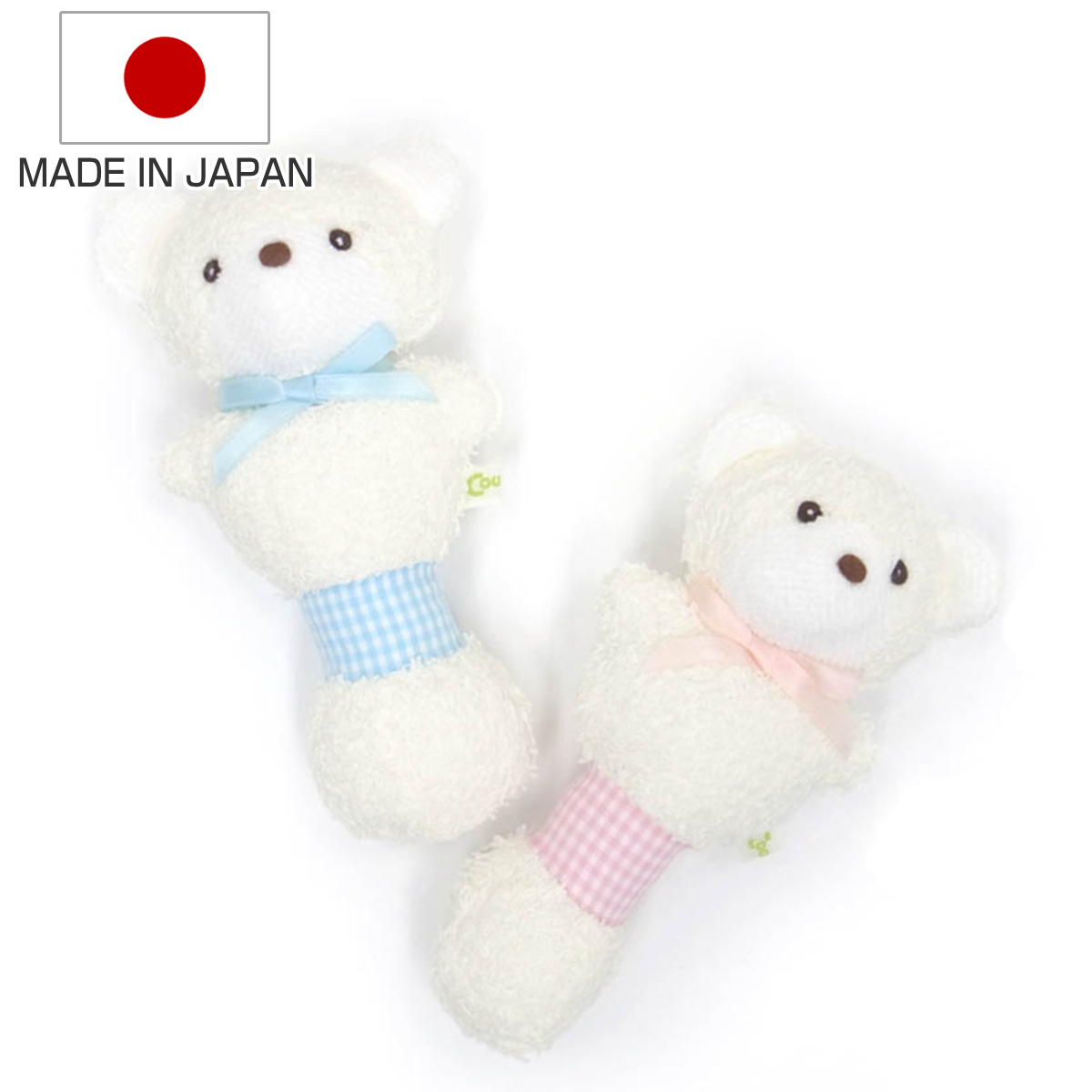 安心の日本製ハンドメイドママの肌の感触に似た柔らかくて、やさしいパイル生地のくまのガラガラです。安心の日本製で、何十年も知育玩具を作り続けている職人さんが、ひとつひとつ丁寧に仕上げています。赤ちゃんがギュっとにぎりやすい形状でやさしい音色の鈴が入っています。出産祝いやプレゼントにもおすすめです。