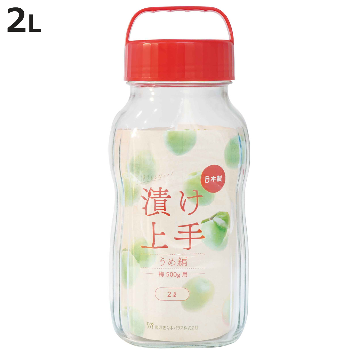 果実酒びん 漬け上手 2L 梅 500g用 保存容器 ( ガラス 密閉 レシピ付き 取っ手付き 保存びん 梅酒びん 梅酒ビン 漬物容器 漬け物容器 )