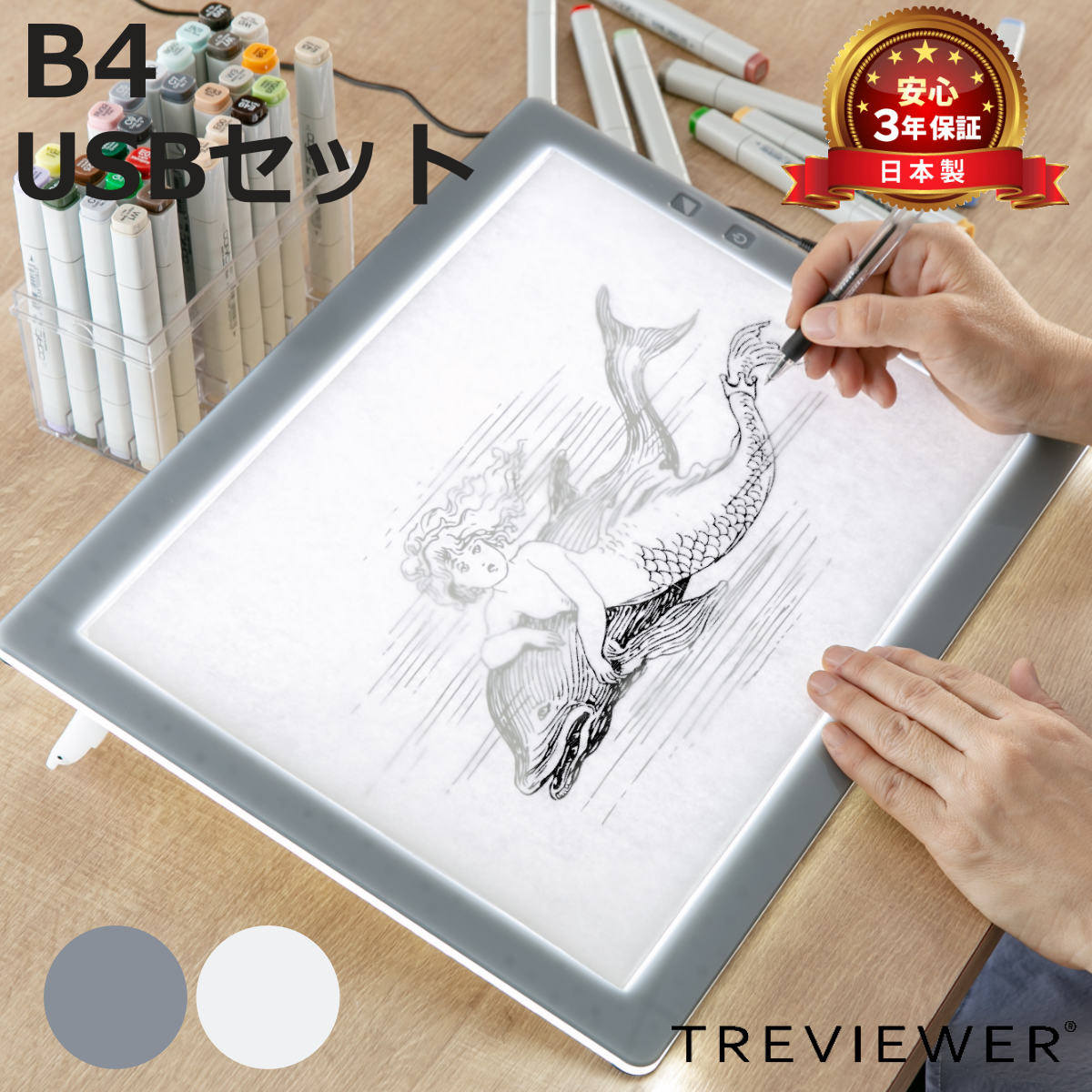 | 備考 | ※メーカー3年保証付 【本体】 透写範囲:約 幅25.7×奥行36.4 (cm) 適応用紙:B4判 光源:LED色温度6500〜7000ケルビン 光源寿命:約40000時間 中央部の明るさ:2500〜4800ルクス 調光機能:7段階(タッチセンサー式) 傾斜角度:4度/11度/14度 【専用USBケーブル】 入力:5V 2A以上、出力:12V 0.7A |