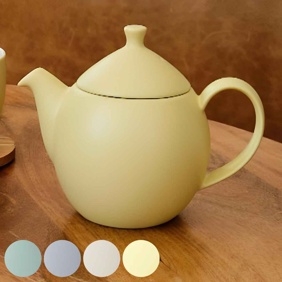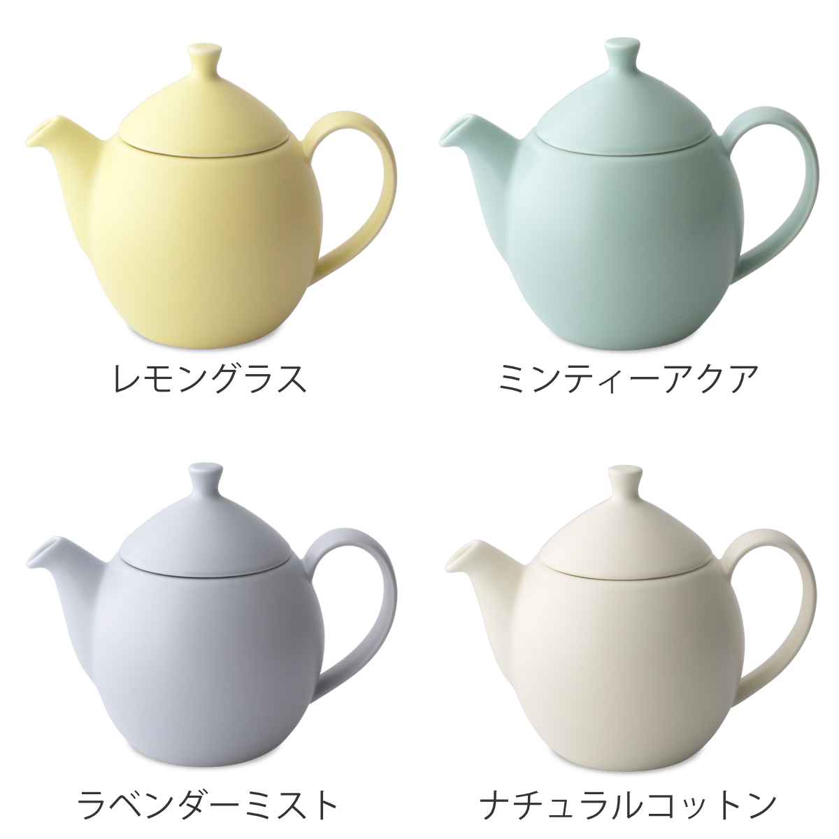 雫のようなフォルムとペールトーンがかわいいティーポット●雫のようなフォルムと優しいペールトーンのカラーリングが特徴のティーポットです。