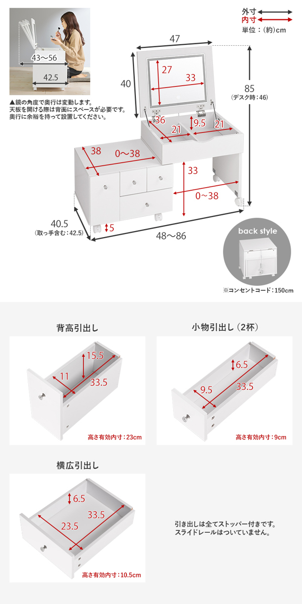| サイズ | 収納時:約 幅48×奥行42.5×高さ46(cm) 展開時:約 幅86×奥行56×高さ85(cm) |