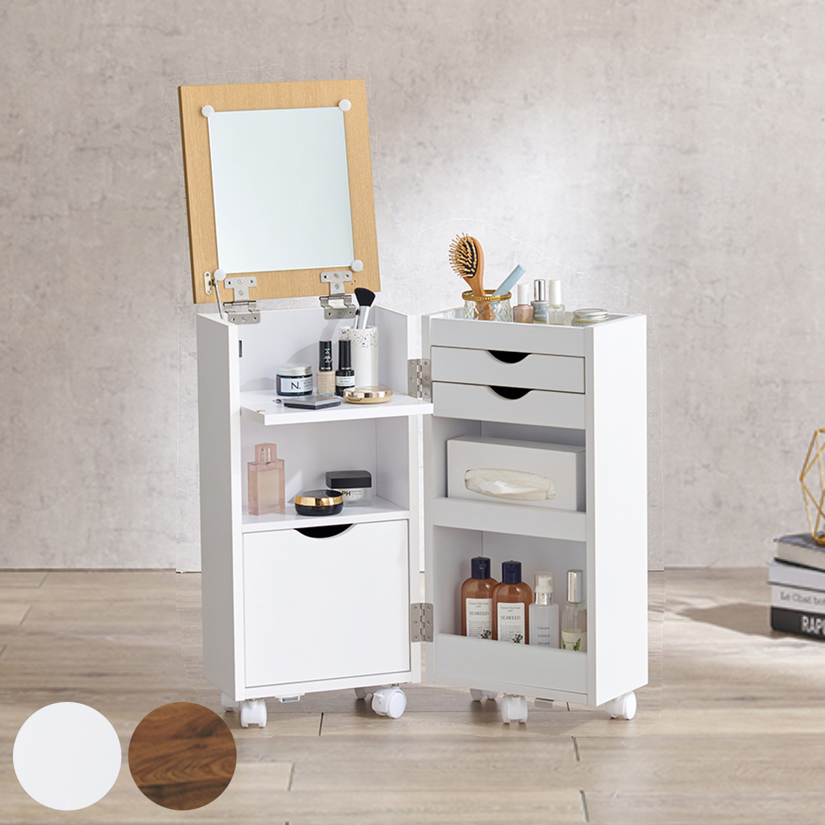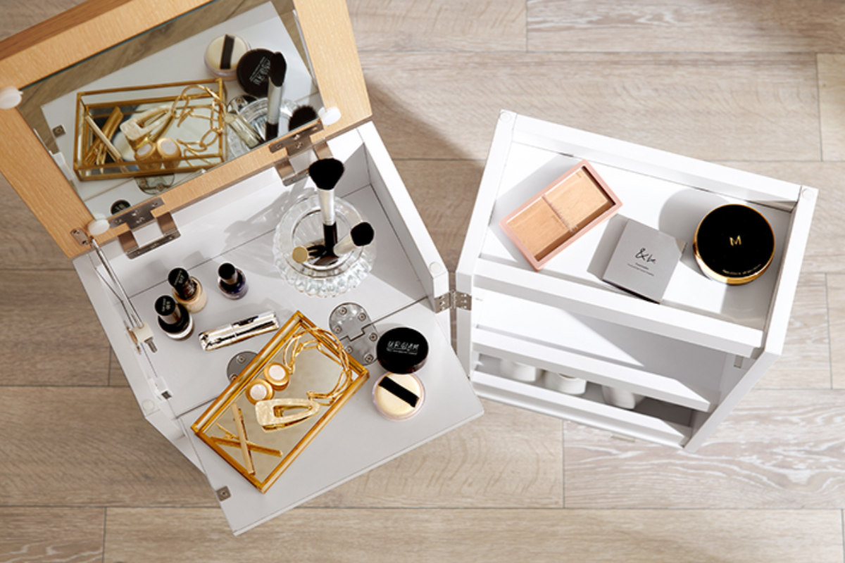| オープン収納 手に取りやすいオープン収納。スキンケア用品などの収納に最適です。 | 引出し収納 アクセサリーなどの小物に。細かなものも無くす心配がありません。 |