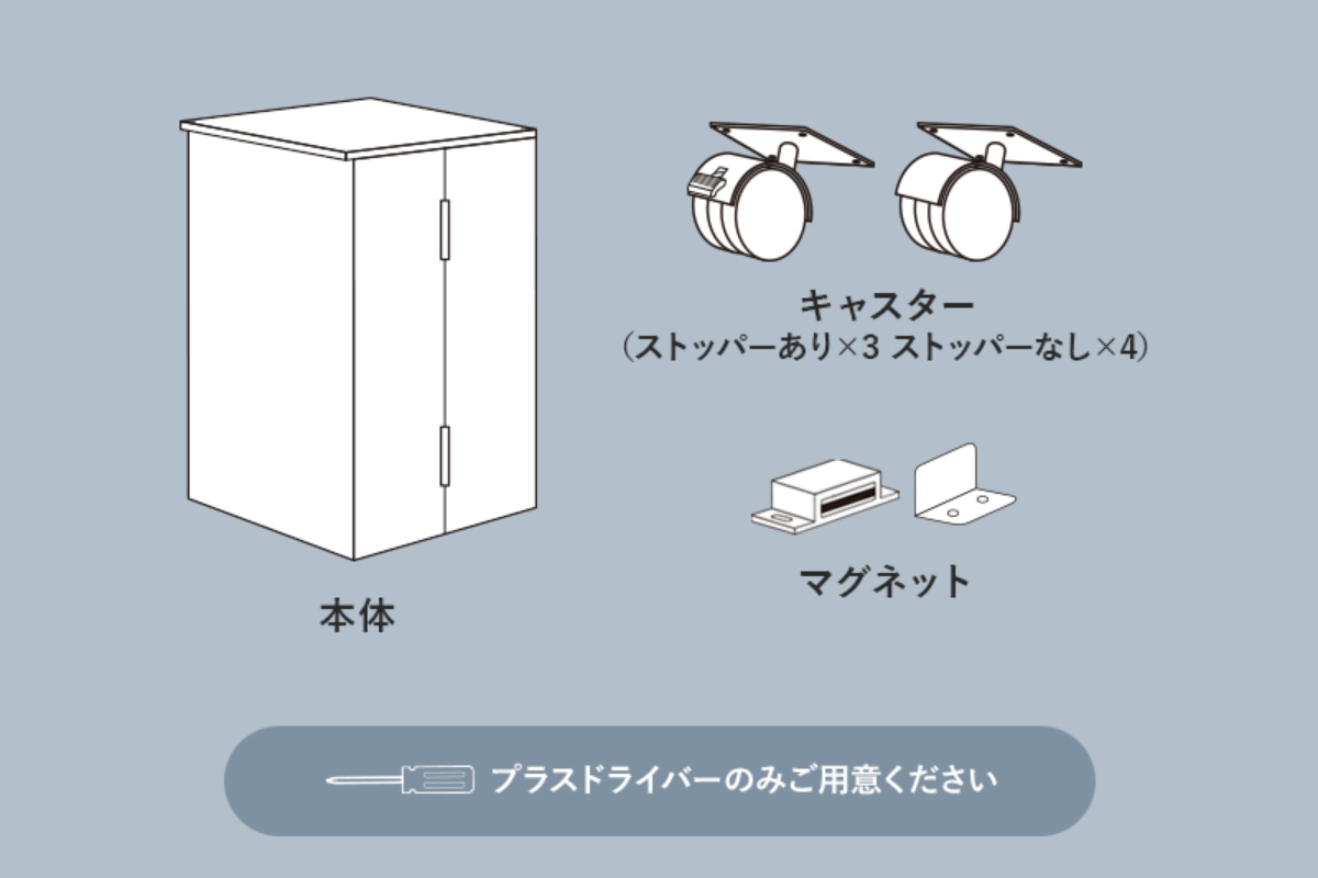 | ストッパー付きキャスター 移動がラクにできるキャスター付きです。ストッパーが付いているので固定もできて安心です。 | お手入れ簡単 水や汚れに強いメラミン加工が施されています。サッと拭くだけでお手入れ簡単です。 |