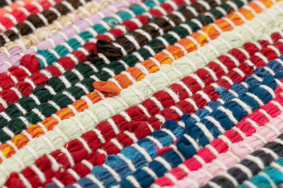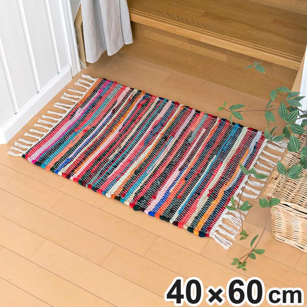 目を惹く明るい配色の玄関マット●カラフルな生地がミックスされた玄関マットです。