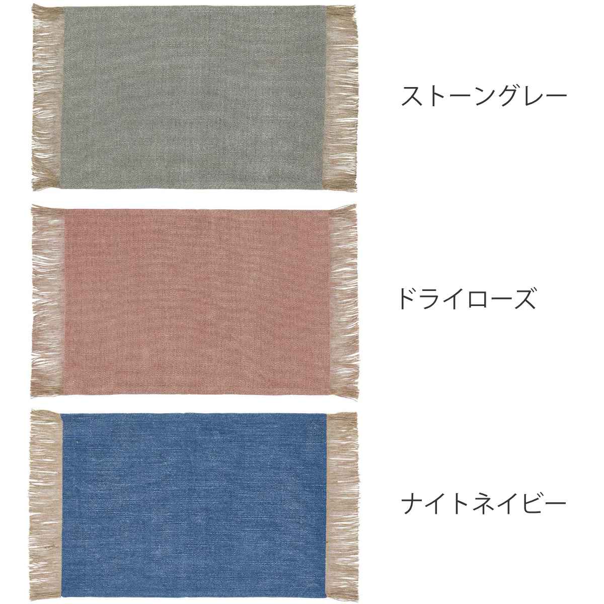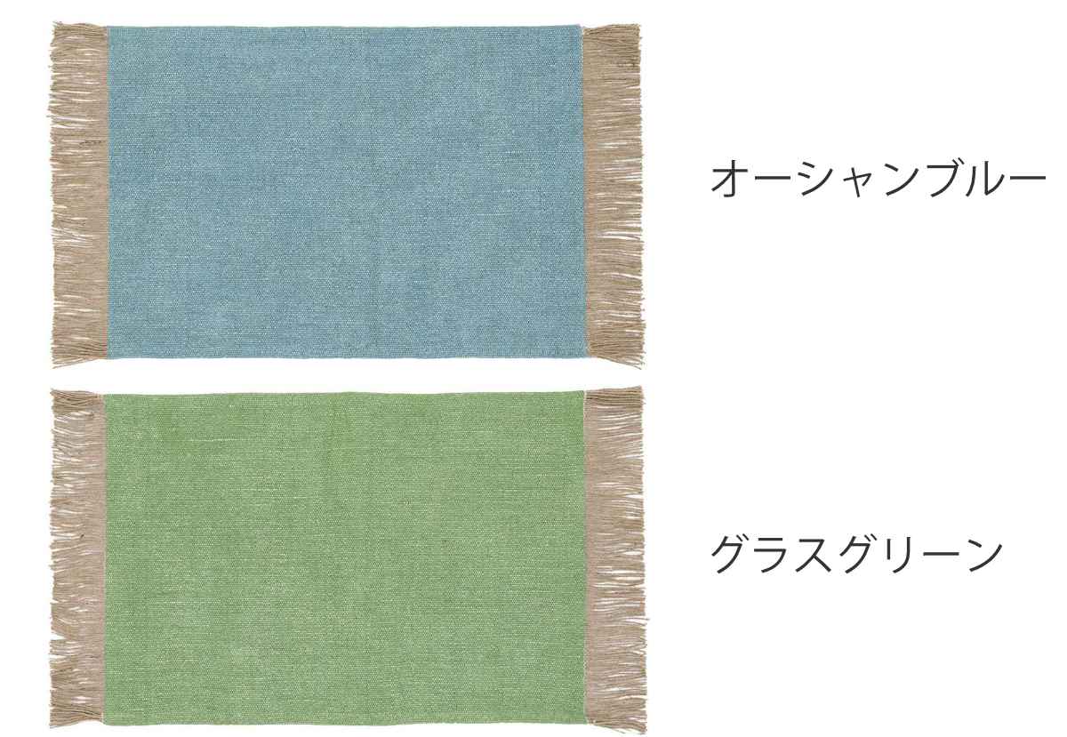 フリンジがポイント両サイドにはジュートのフリンジが付くことで無地のマットに可愛さをプラスします。細かく、多めのフリンジがポイントです。