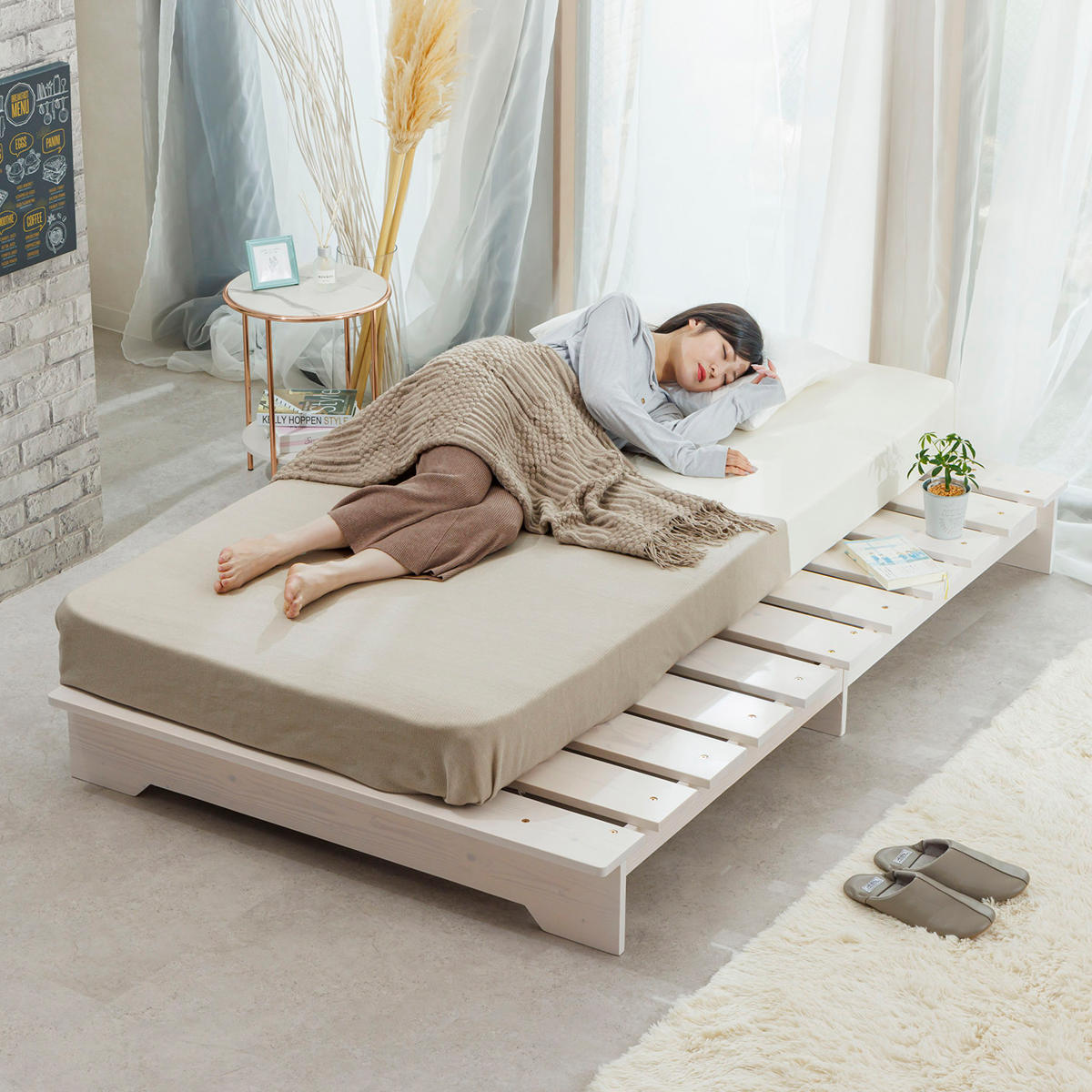 小さいサイズのマットレスと組み合わせて使うことで、余ったすのこ部分をサイドテーブルとして有効活用したり、ベッドから降りる時の踏み台にしたり、ライフスタイルに合わせてアレンジしていただけます。