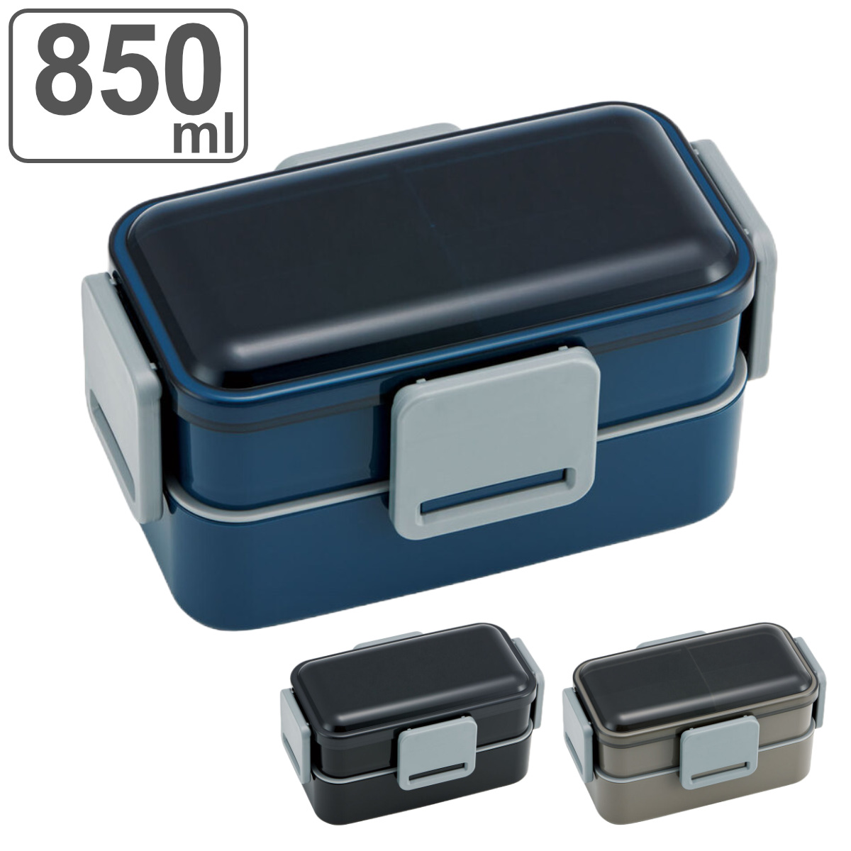メンズにおすすめサイズの850ml天然鉱石タルクを配合し、石油由来成分を削減した環境にやさしいお弁当箱です。上段に330ml、下段に520ml入り、総容量は850mlで、男性や男子学生におすすめです。下段にはお茶碗約2.6杯分(お茶碗1杯:約200ml)とたっぷり入ります。お弁当箱全体に銀イオンの抗菌加工が施されており、安心してお使いいただけます。直接食材に触れるお弁当箱なので、抗菌加工は嬉しいポイントです。