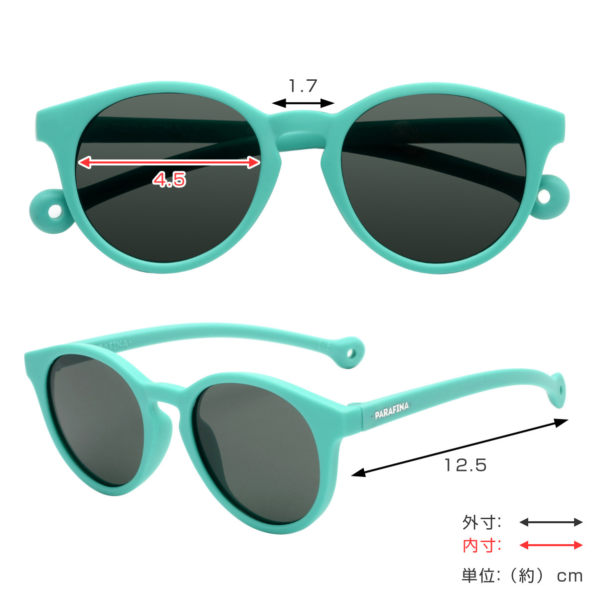 | サイズ | レンズ幅:約 4.5(cm) ブリッジ:約 1.7(cm) テンプル:約 12.5(cm) |