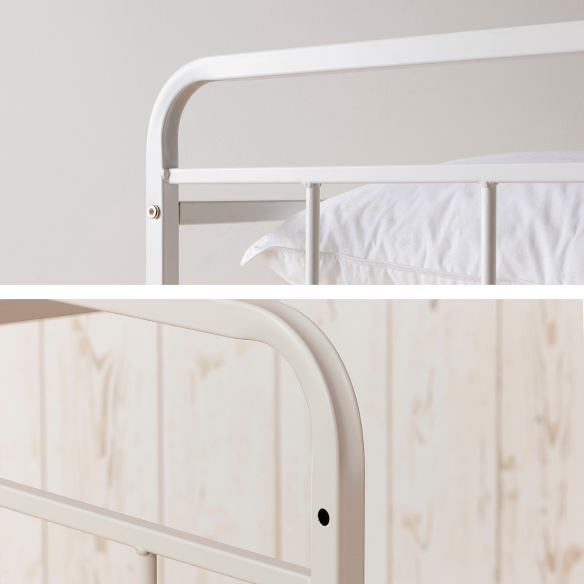 ●サイドガードが布団のずれを防ぎ、背面は落下防止のパイプもついています。