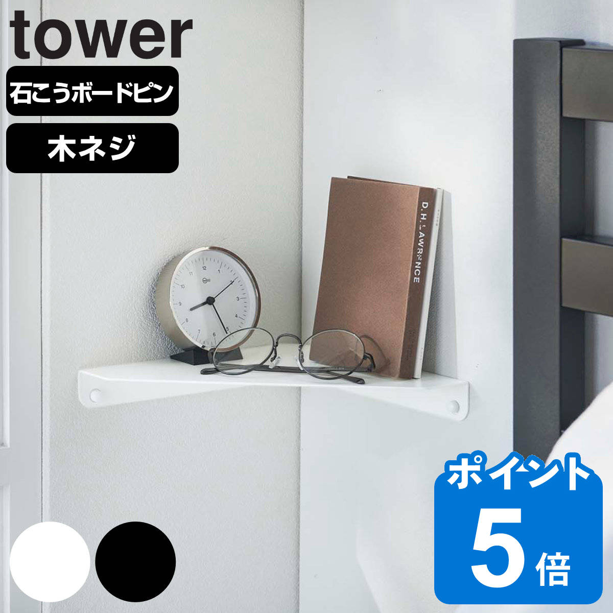 特典付き 山崎実業 tower 石こうボード壁対応 コーナーシェルフ タワー ( 4903208069113 タワーシリーズ 石膏ボード ピン 角 ウォールシェルフ 壁掛け )
