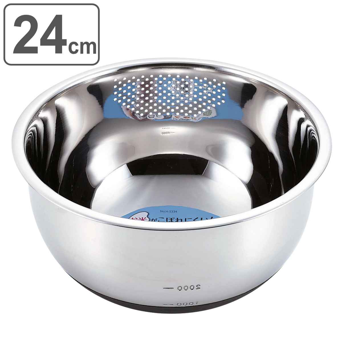 滑りにくい設計 耐久性があるステンレス製底面は滑りにくいラバー仕上げなので、安定してお米を研ぐことができます。側面は目盛り付きで2000mlまで量ることが出来ます。耐久性のあるステンレス製なので長くご使用いただけます。