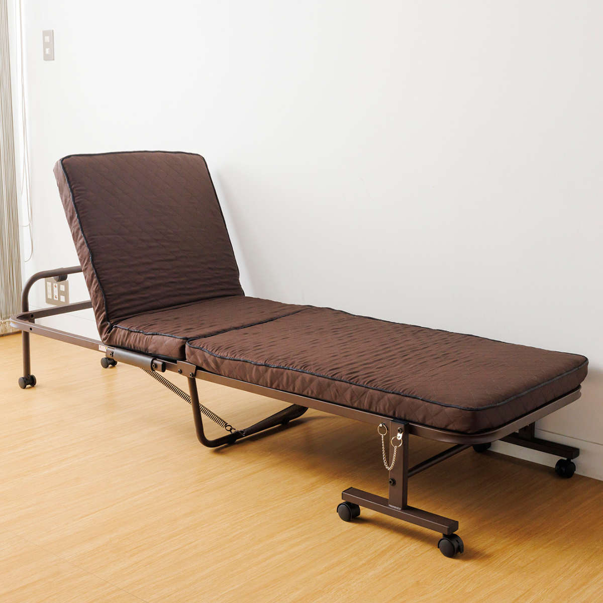 必要なときだけ広げ、使わないときはコンパクトに収納できる折りたたみベッドです。コンパクト設計なので、ひとり暮らしの方はもちろん、来客用や介護の添い寝用にもおすすめです。