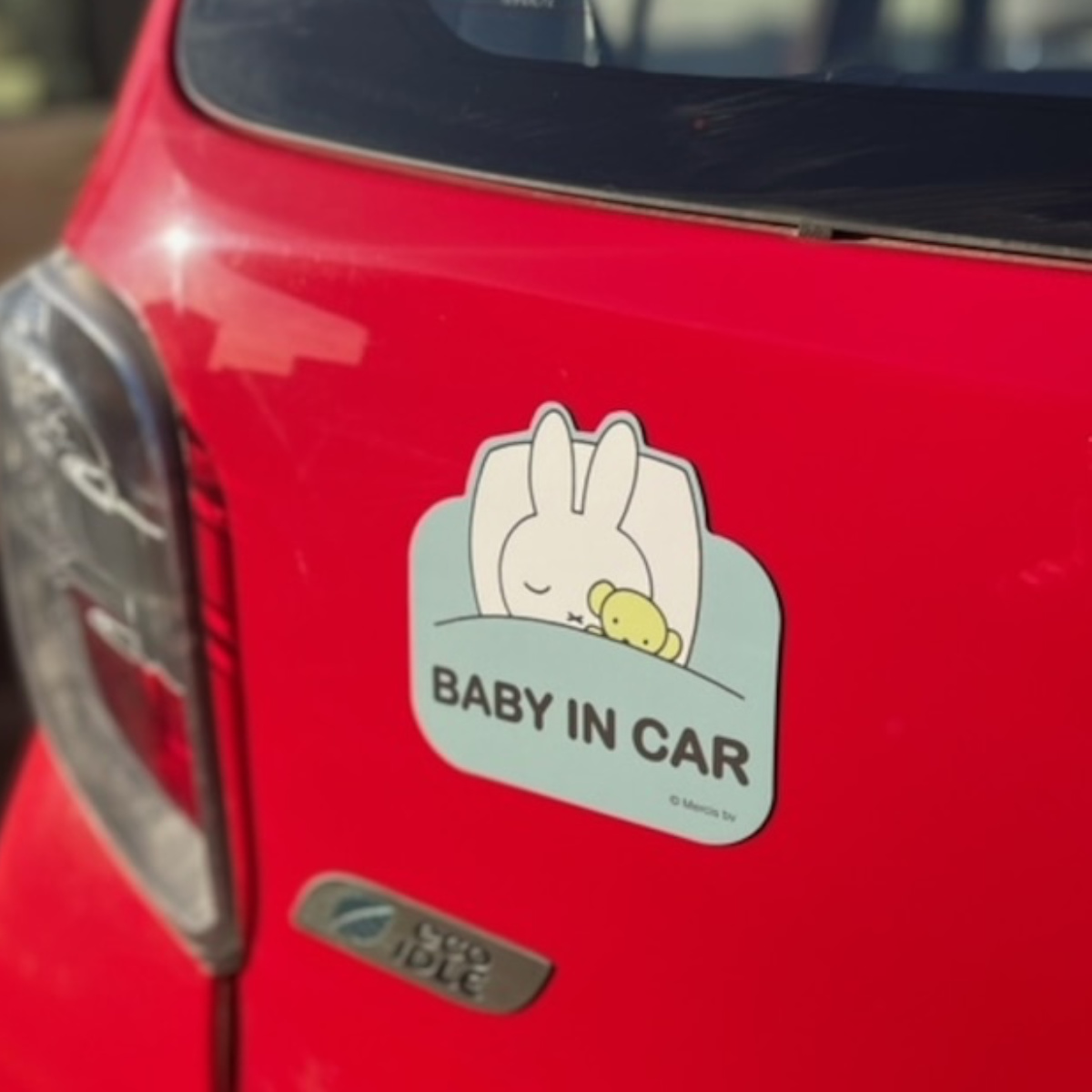 赤ちゃんの乗車をミッフィーたちがお知らせ自動車の背面や側面に貼り付けるマグネットタイプのセーフティーサインです。赤ちゃんの乗車を、ミッフィーが後続車にお知らせしてくれます。万が一の自動車事故時にも、お子様がいることを周りに知らせることができ、迅速な救助作業を助けるのに有効です。