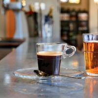 スタイリッシュなデザインのコーヒーカップ 90mlエスプレッソやデミタスコーヒーなどにぴったりの小さめサイズです。ガラスの透明感が美しく、コーヒーの色合いを引き立たせます。同シリーズのソーサーを揃えてミルクやシュガーなどを添えるのもおすすめです。