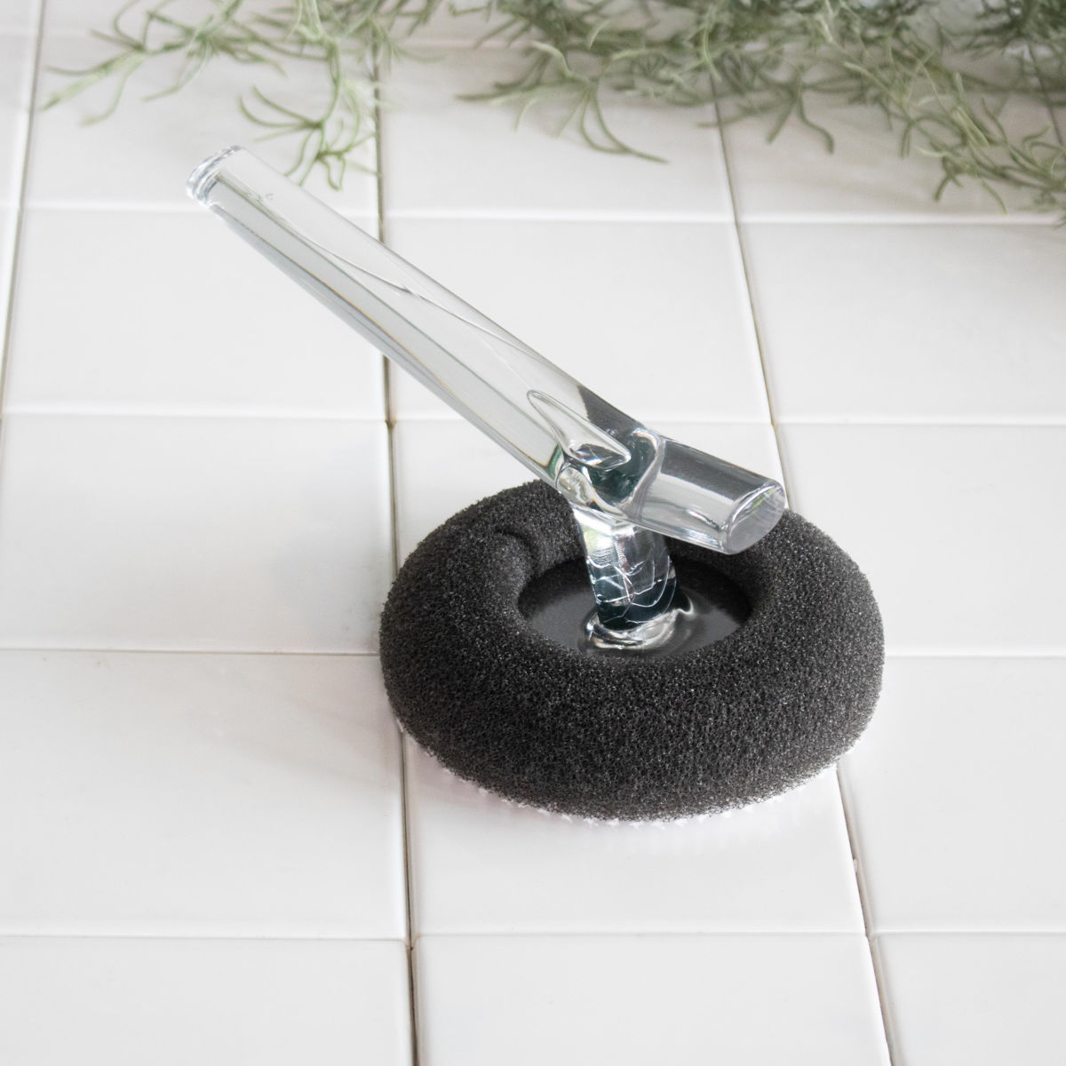 クリアな柄が特徴的なハンディタイプのバスタブ掃除用のスポンジです。使わないときはそのまま置いときたくなるような、シンプルでスタイリッシュなデザイン。握りやすく力の入りやすい形状のハンドルで、デザイン性と機能面を兼ね備えたお掃除アイテムです。