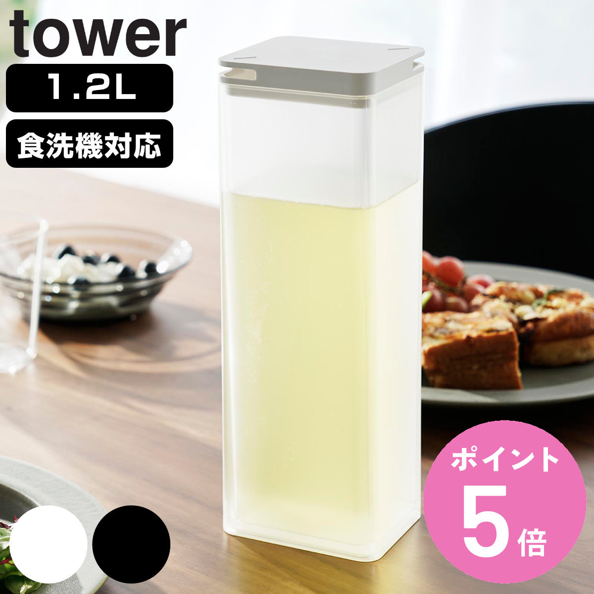 ![]() 1.2L 倒して置ける冷水筒 タワー | ![]() 2L ハンドル付きスリム冷水筒 タワー |