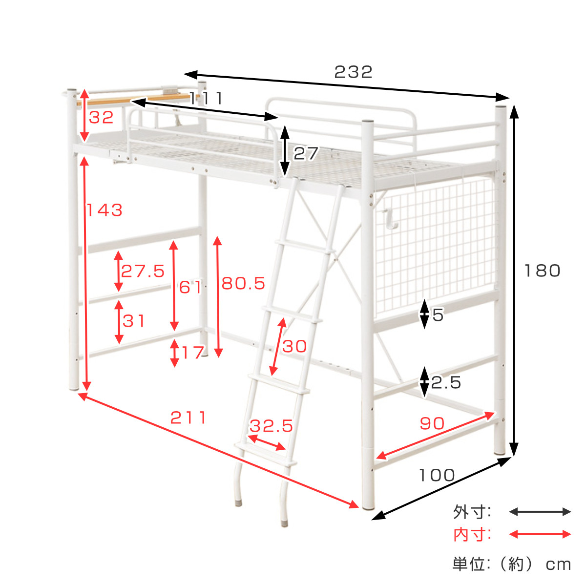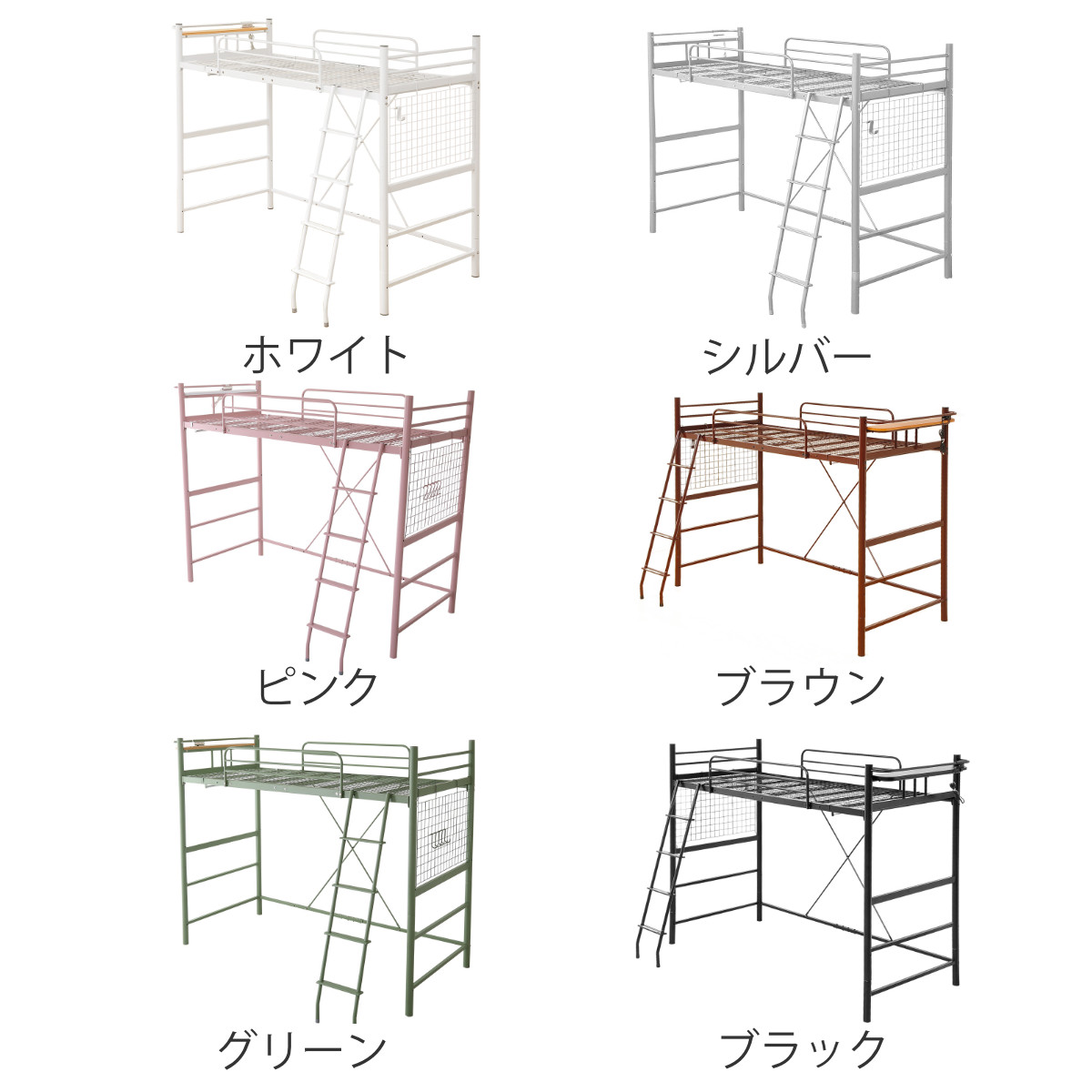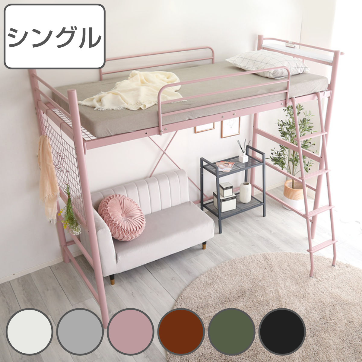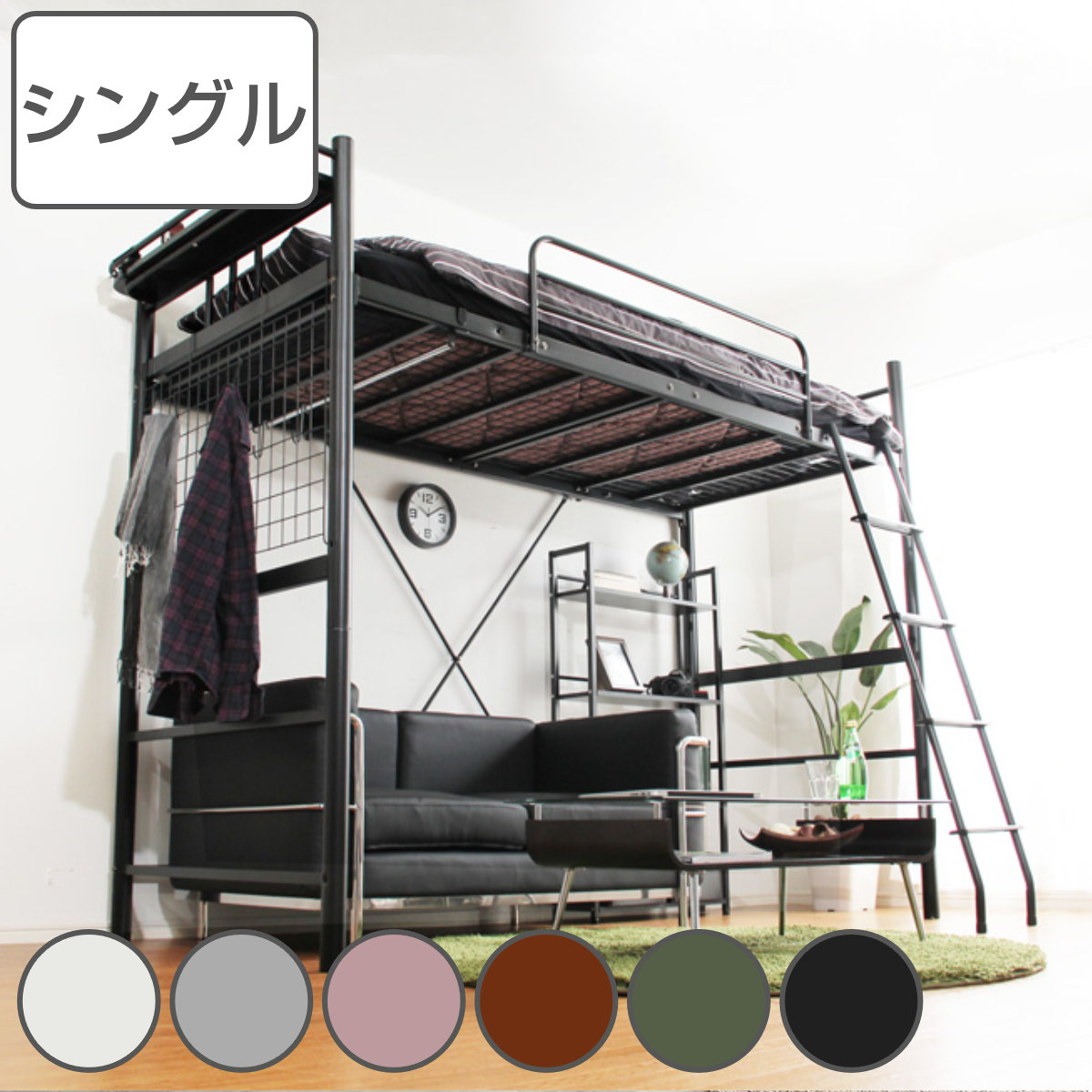 ロフトベッド シングル メッシュ 宮棚 2口コンセント付き 選べる高さ ( ハイタイプ ミドルタイプ ベッド ロフト ベット フレーム システムベッド )