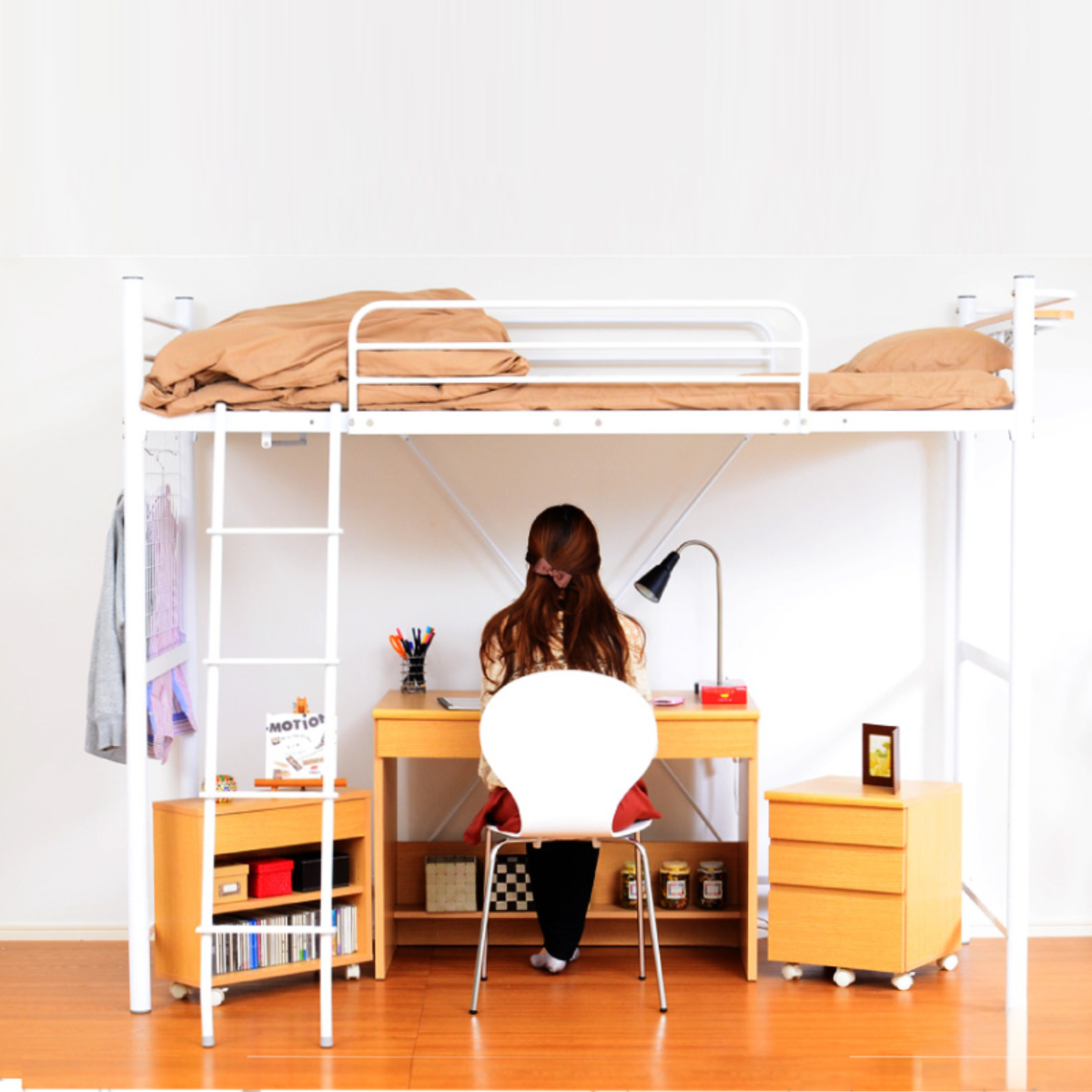 ベッド下には大容量収納することができ、お部屋のスペースを有効活用することができます。ソファやデスクなどの家具を置けば、小さなお部屋として自分だけのスペースに。