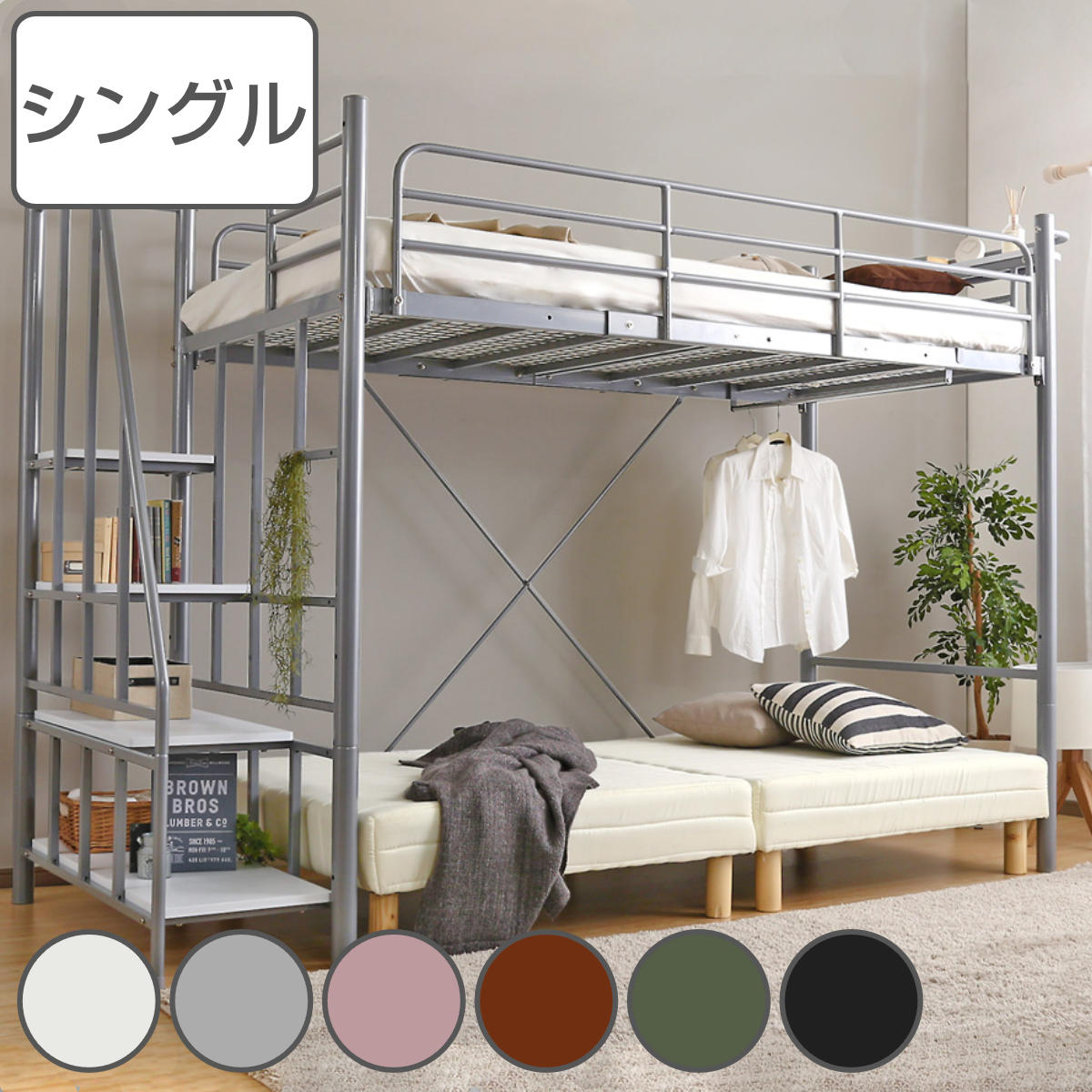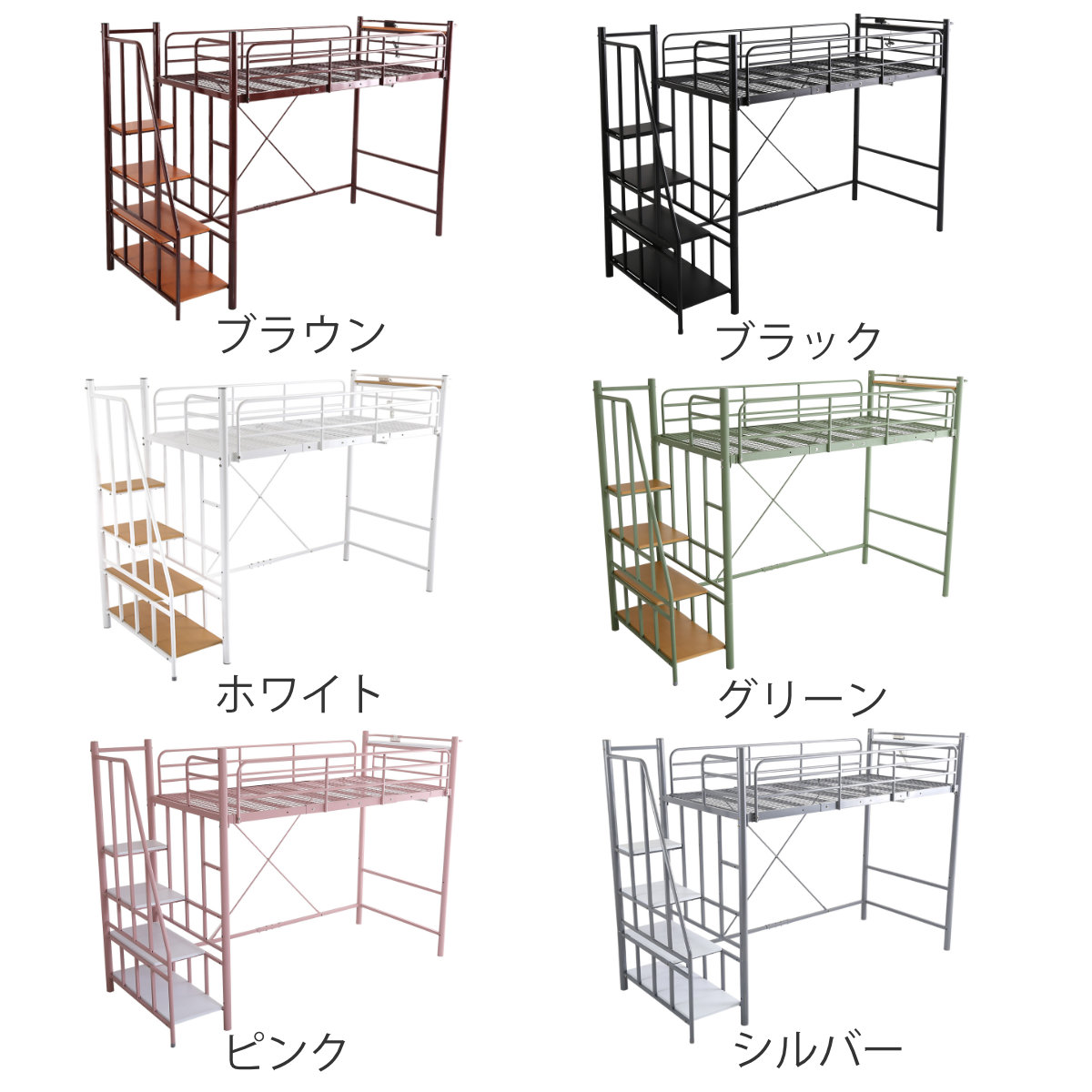 ロフトベッド シングル 階段付き メッシュ 宮棚 2口コンセント付き 選べる高さ ( ハイタイプ ミドルタイプ ベッド ロフト ベット フレーム システムベッド )