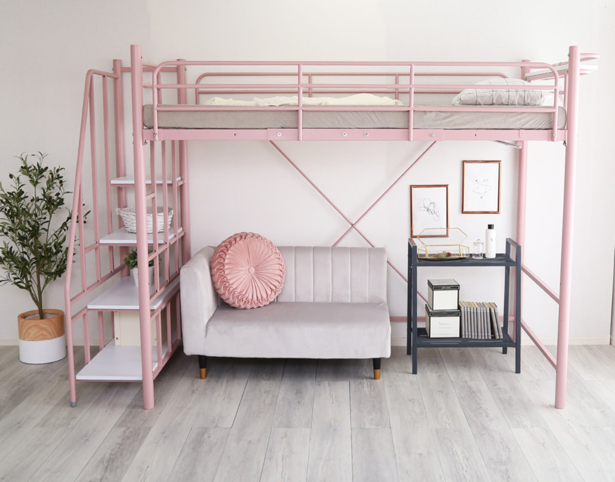 ベッド下には大容量収納することができ、お部屋のスペースを有効活用することができます。ソファやデスクなどの家具を置けば、小さなお部屋として自分だけのスペースに。