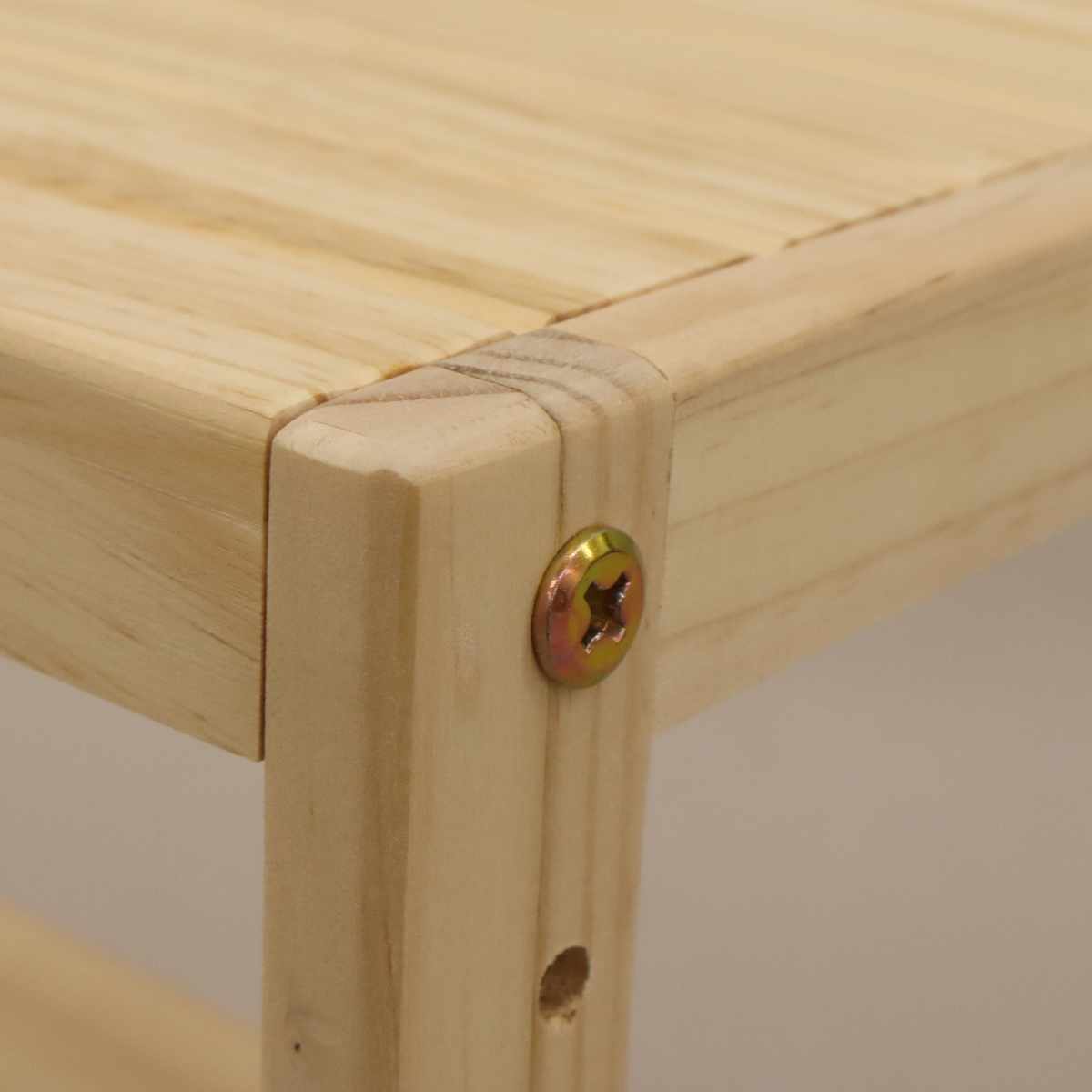 天然木のパイン材使用天然木のパイン材を使用しているので、天然木ならではのあたたかみとナチュラルな雰囲気が感じられます。また、無塗装なので経年の色の変化を楽しむことができます。色を塗り替えて使うのもおすすめです。