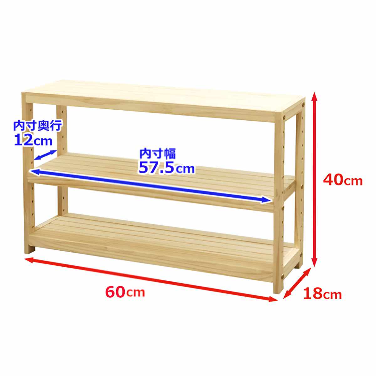 | サイズ | 約 幅60×奥行18×高さ40(cm) |