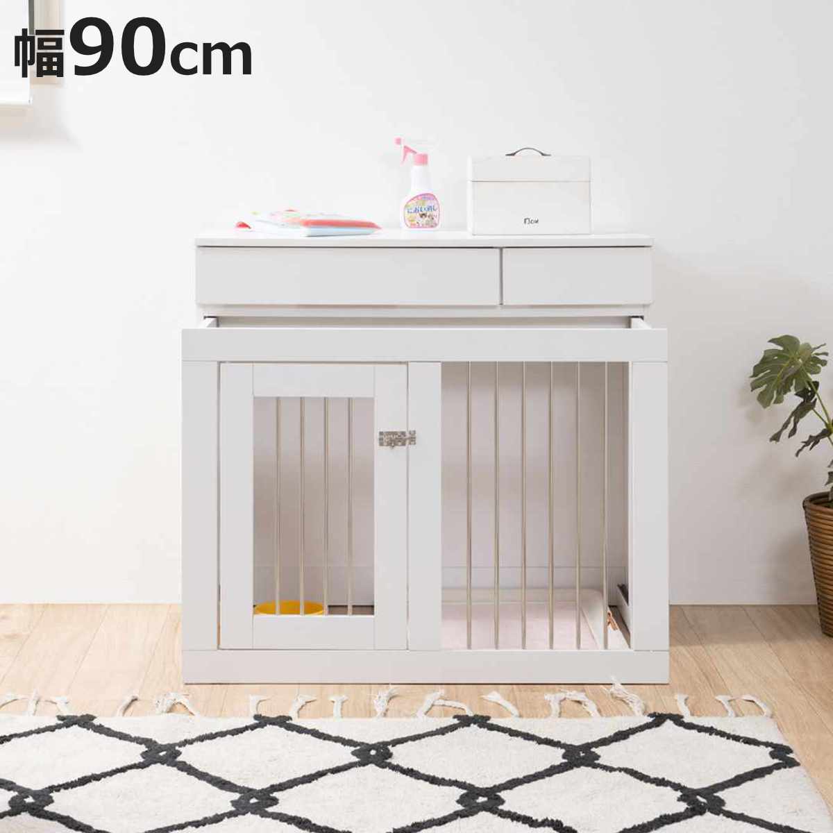 ペットケージ 幅90cm キャビネット ホワイトリビング ( ペット家具 ケージ 家具 収納 引き出し )