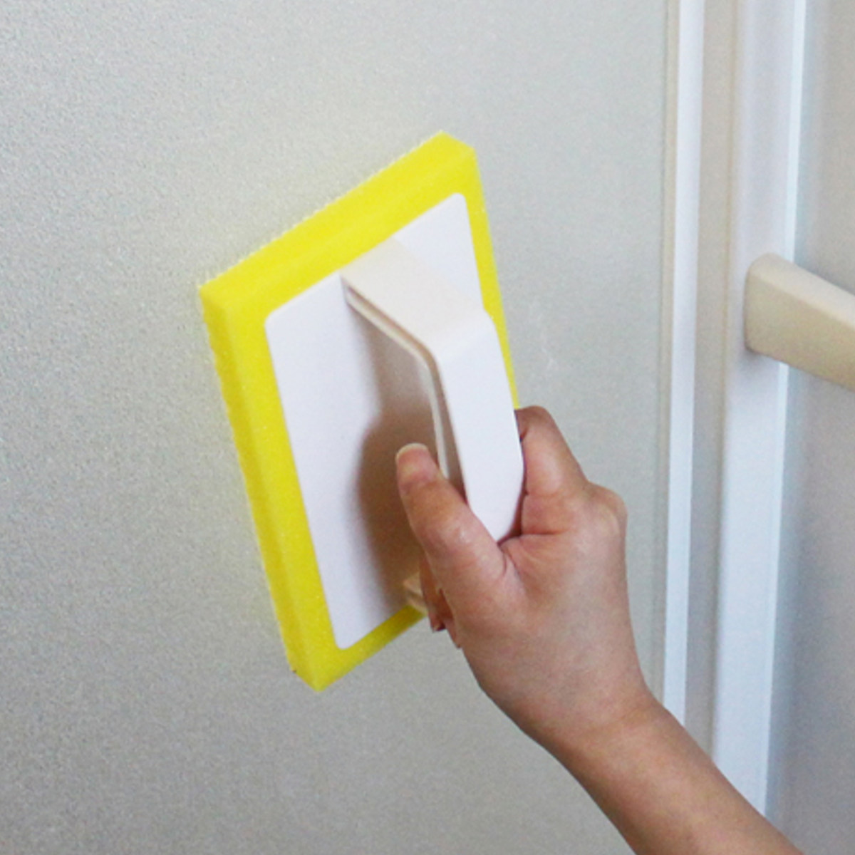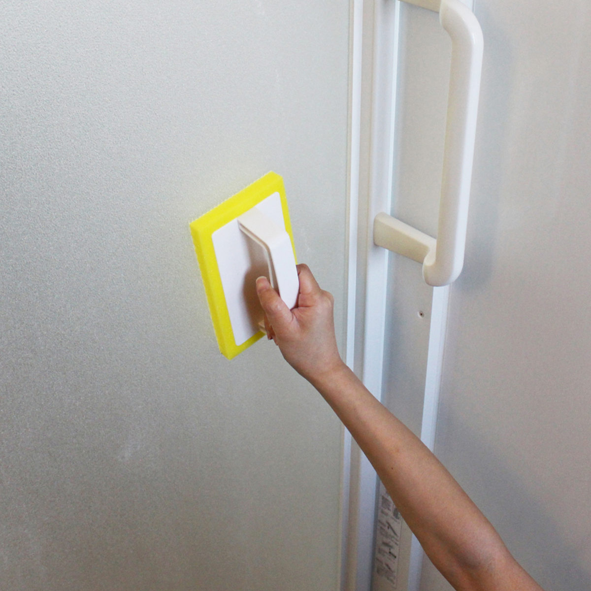 浴室のドア・すりガラスのお掃除にも便利角まで届く四角いスポンジで、隅々までお掃除できます。浴室の様々な場所に幅広く使用可能です。