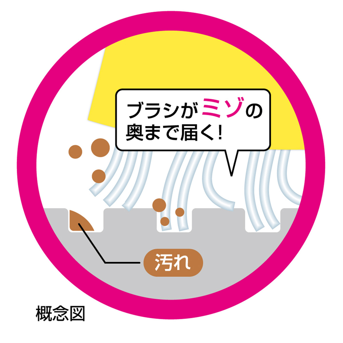 ●ツンツンブラシがヌメリ・汚れをしっかりかき出します。
